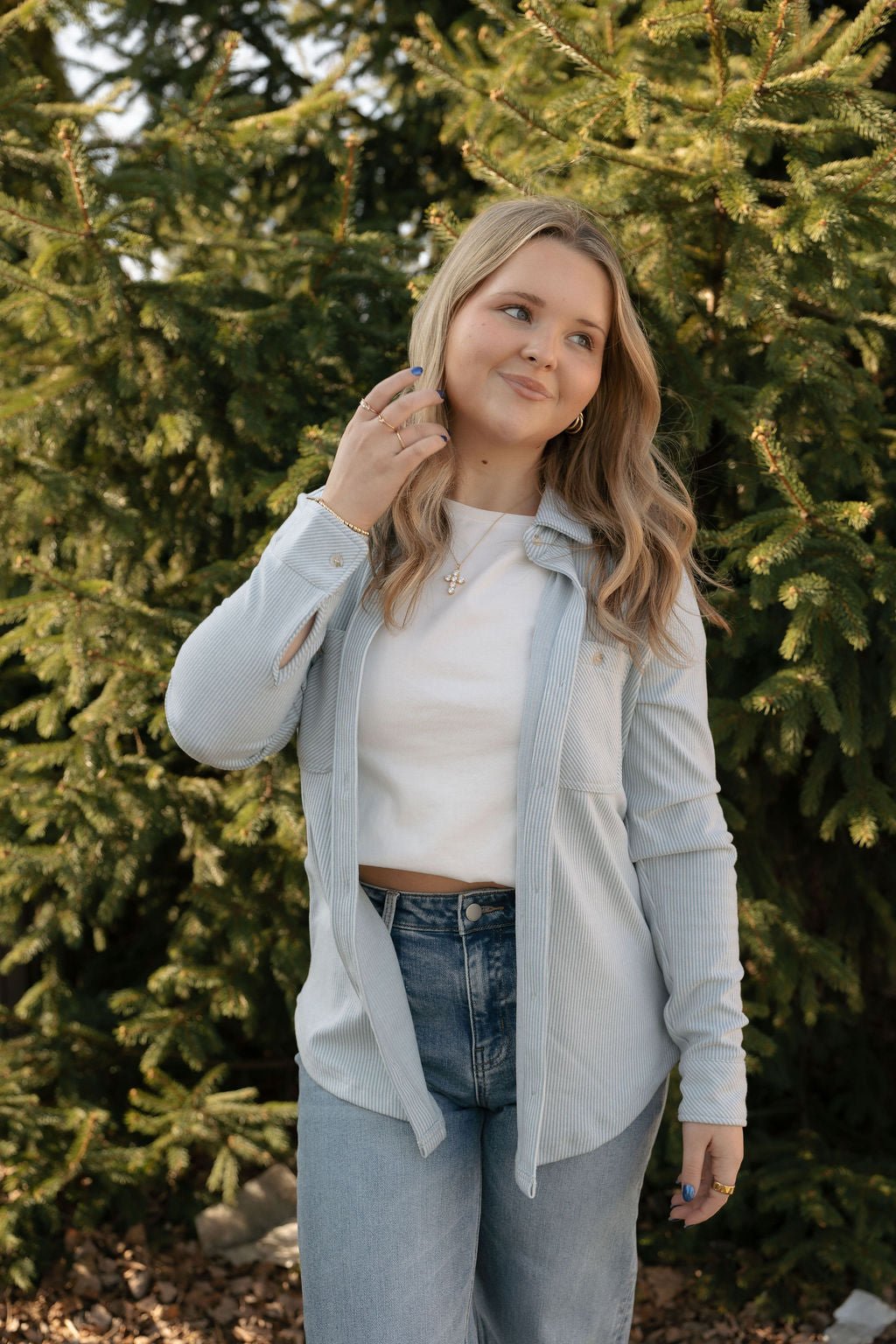 * The "Perfect Fit" Silhouette:Featuring a 23.5" length (Size Small) that hits at just the right spot for both tucking in or leaving out.