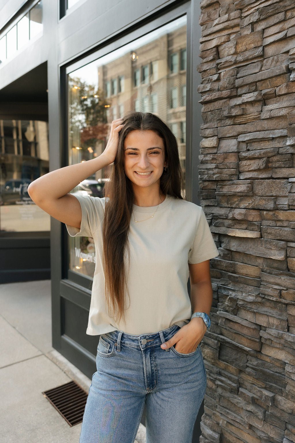 The Everyday Tee in Moss offers a simple yet versatile look with its comfortable medium-length fit and short sleeves. Designed for year-round wear, this tee pairs easily with any outfit, making it a reliable staple for your wardrobe throughout all seasons.