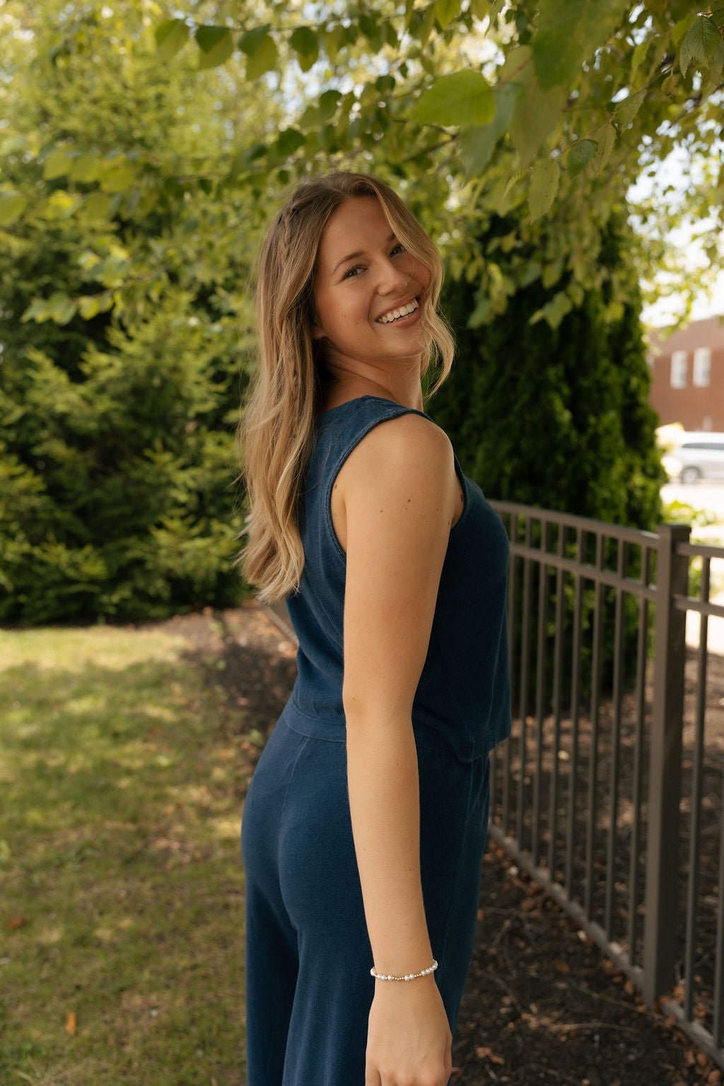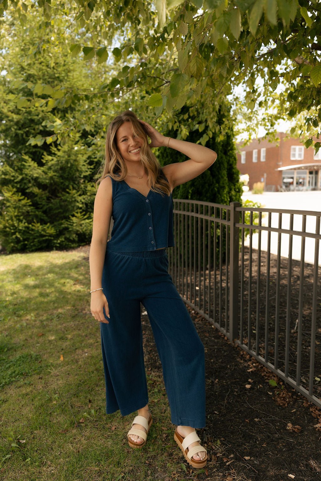 The Scout Jersey Denim Pant in Indigo by Z Supply offers a simple, comfortable fit with a high-rise design and elastic waistband. Its cropped length makes it perfect for year-round wear, blending casual style with easy movement. Ideal for those seeking effortless versatility in their wardrobe.