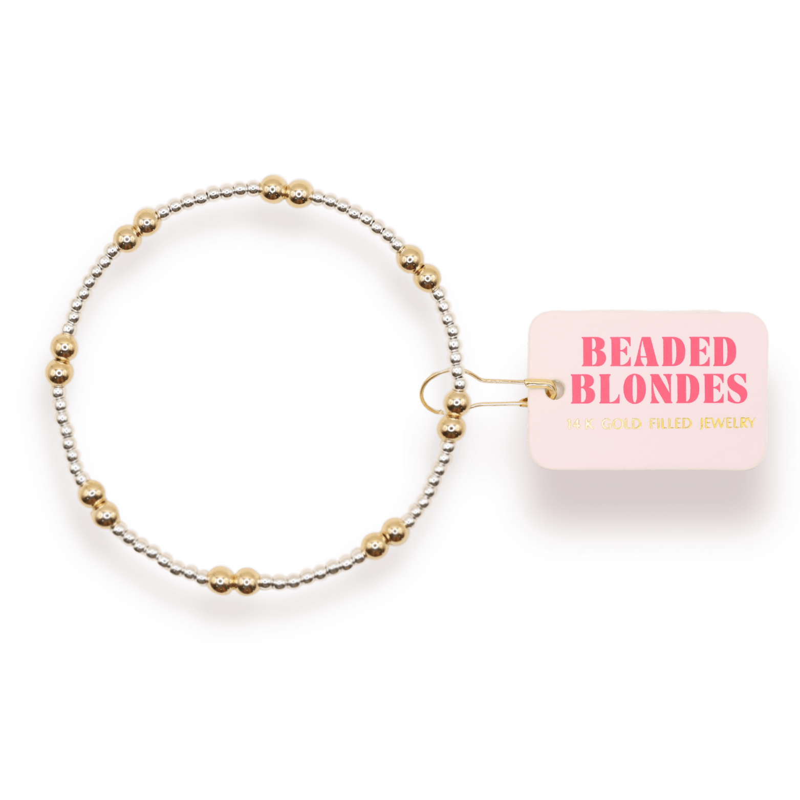 The Lively is a mix of 3mm & 5mm beads. • 14 K gold filled, sterling silver & elastic string • Handstrung in College Station, Texas. Sourced in the US.