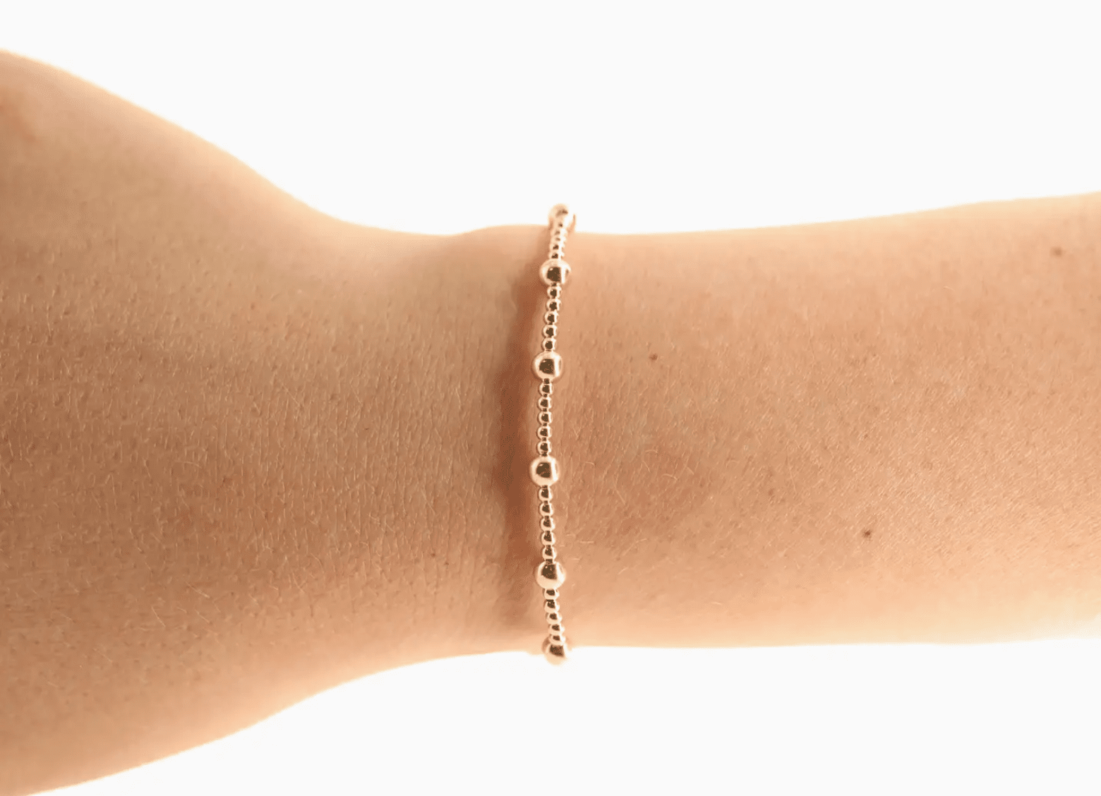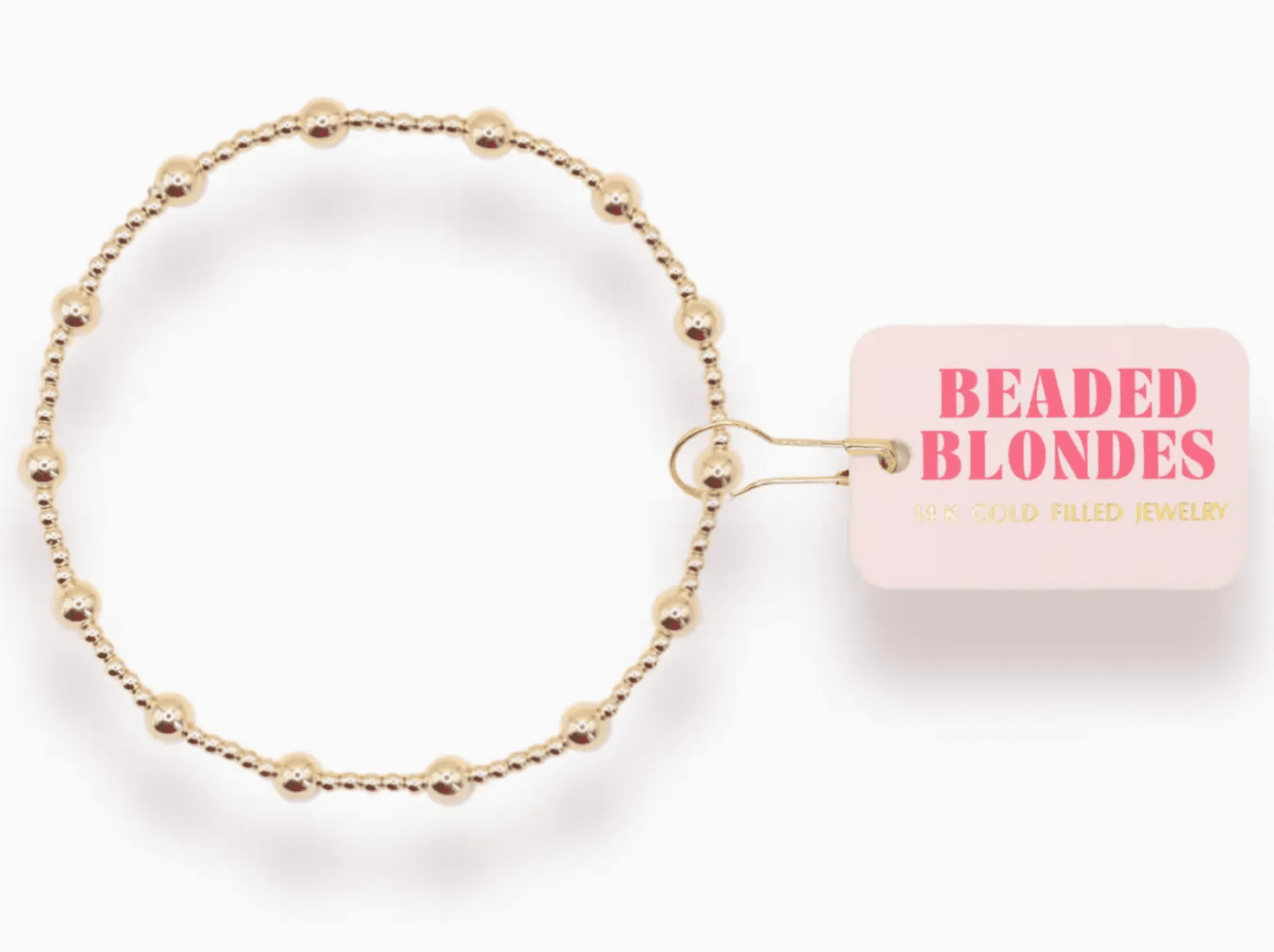 The June is a mix of 2mm & 4mm beads. • 14 K gold filled & elastic string • Handstrung in College Station, Texas. Sourced in the US. • Waterproof, workout proof & tarnish proof