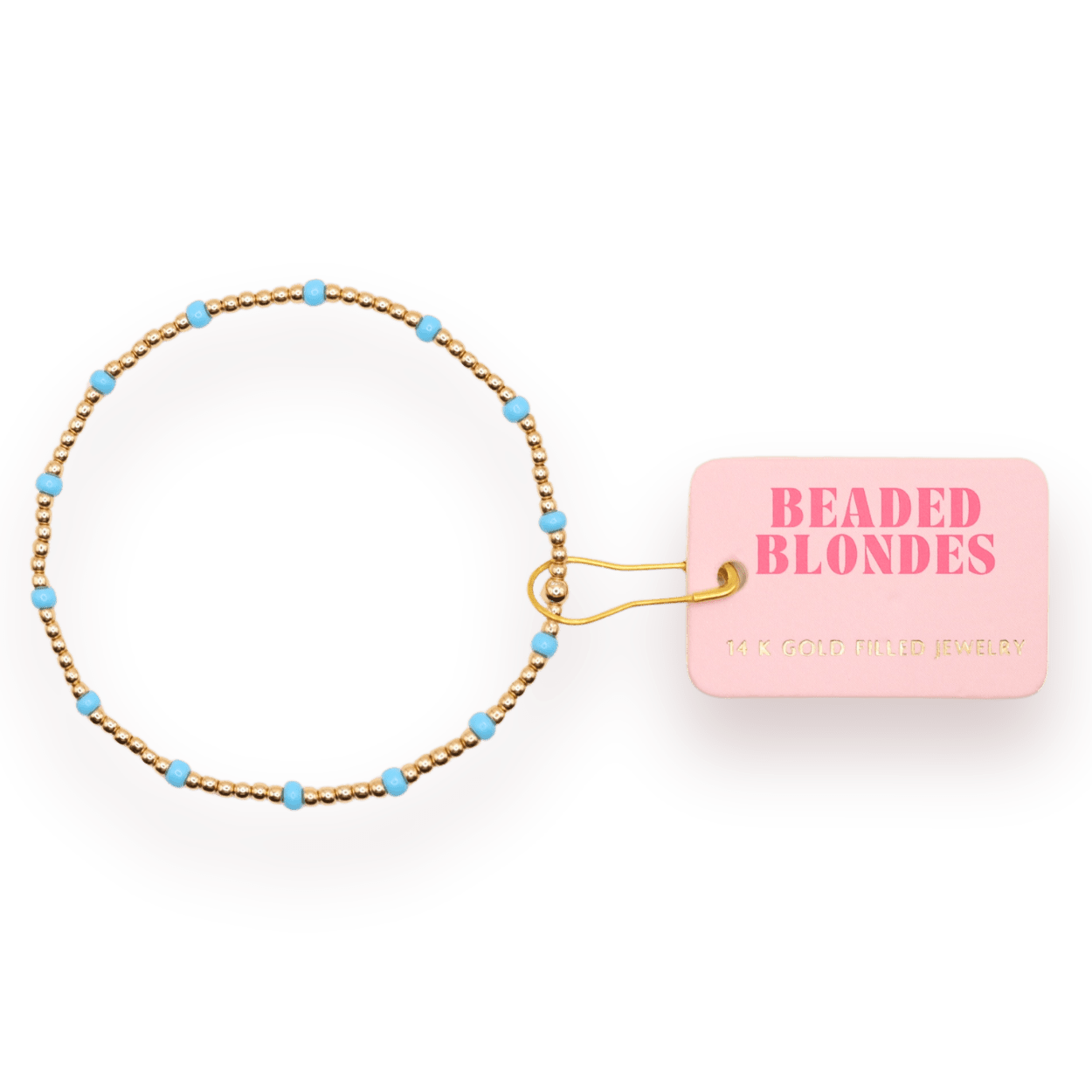The powder blue dainty poppi is a mix of 2mm & czech glass beads.