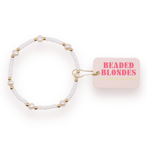 Beaded Blondes Spring 2025 Collection. This bracelet is made with colorful czech glass beads, 2.5mm beads & pearls. • 14 K gold filled & elastic string • Handstrung in College Station, Texas. Sourced in the US. • Waterproof, workout proof & tarnish proof • Care tips - harsh chemicals can cause slight darkening View our sizing guide Beaded Blondes offers styles with both freshwater and synthetic pearls—this design features synthetic pearls for a perfectly symmetrical, uniform look.