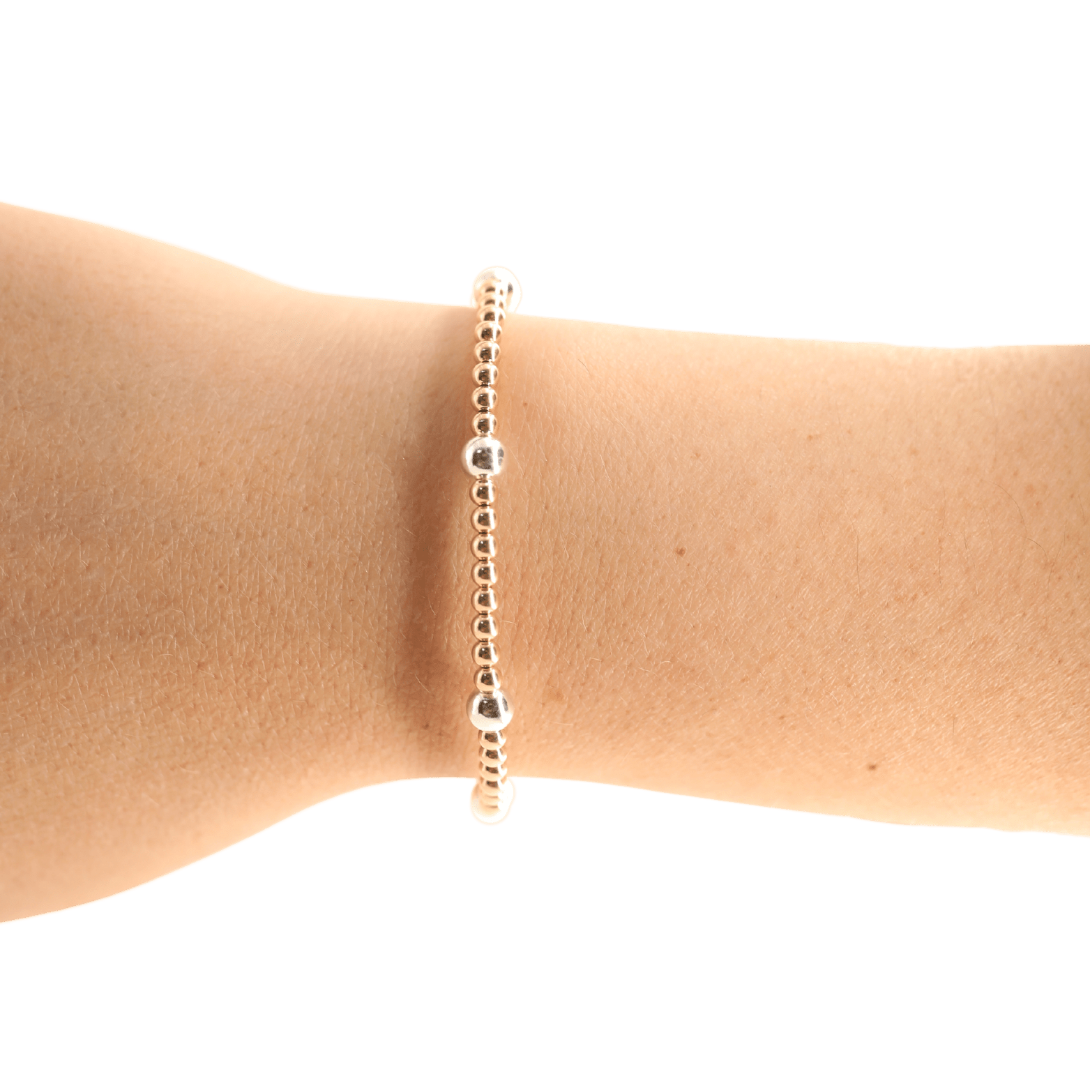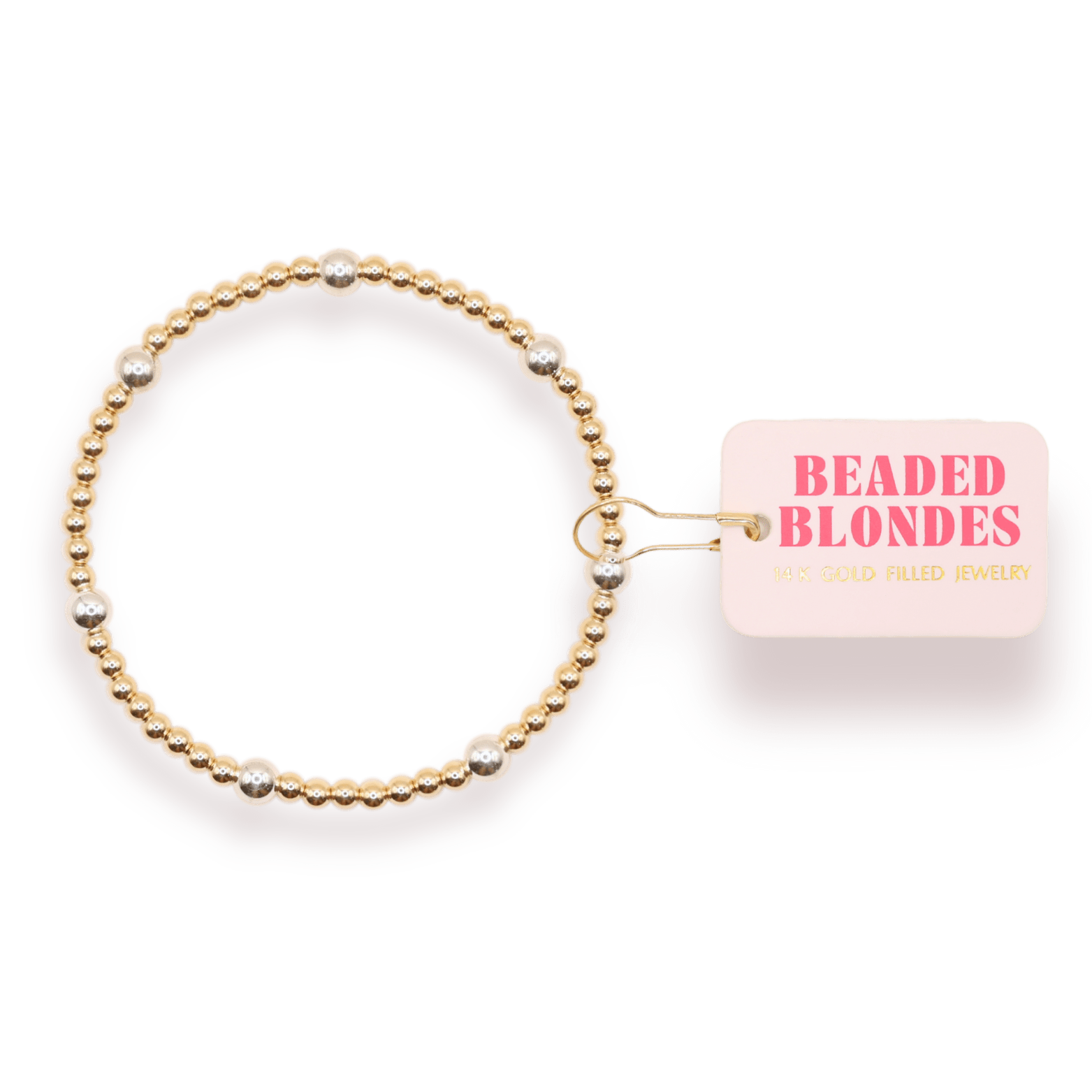 Beaded Blondes gold + silver stackable beaded bracelets.