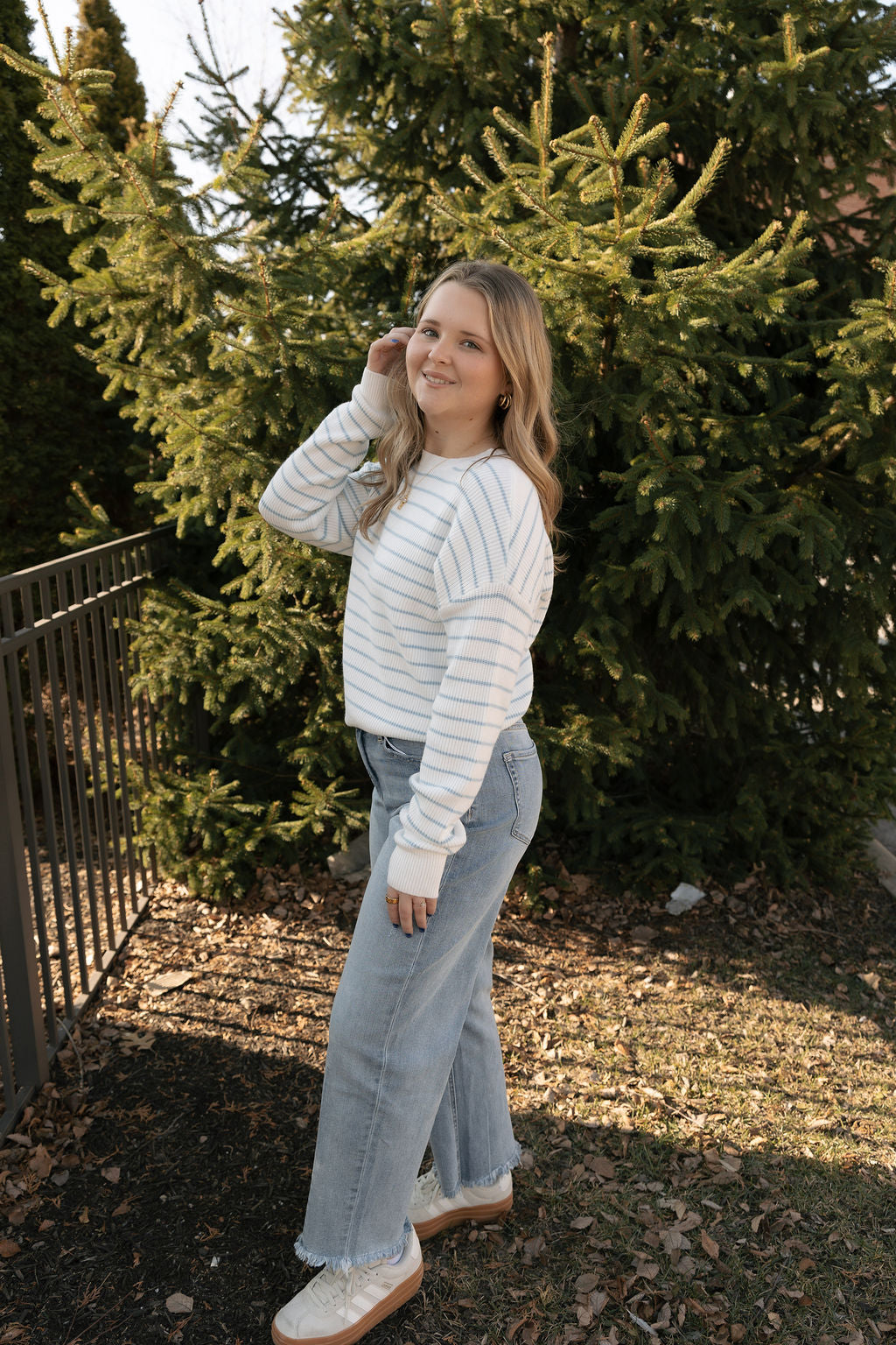 Whether you’re running errands, heading to brunch, or cozying up at home, the Ely Sweater in Ivory/Blue brings timeless comfort and subtle style to every outfit.