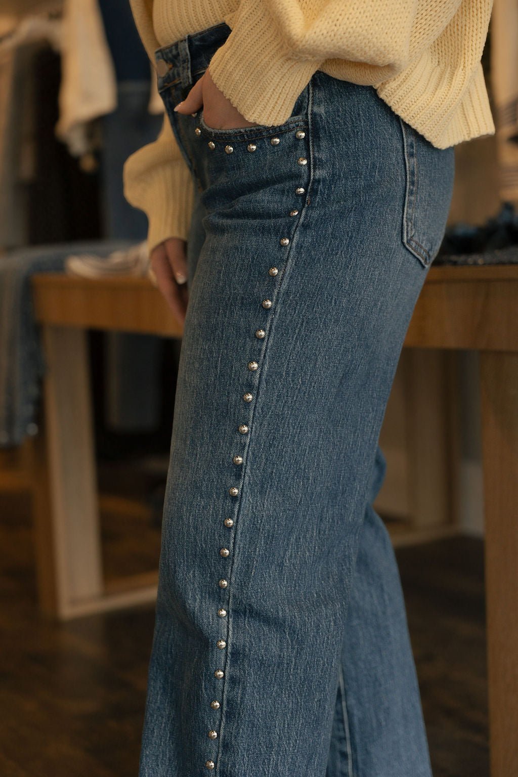 Low Rise Studded Baggy Jean