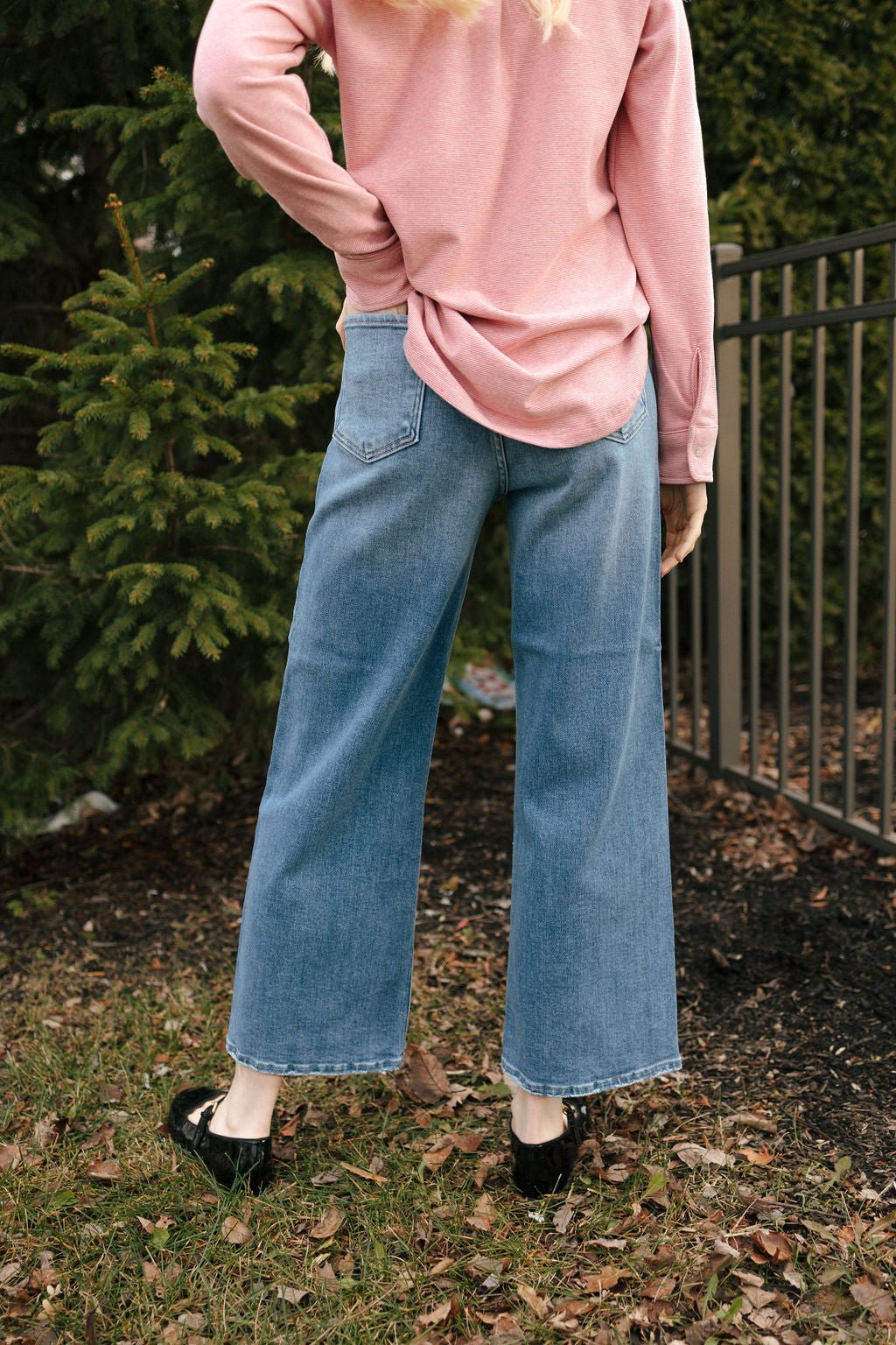 The Patch Pocket Wide Leg We combined contemporary styles with 70s vibes to create the most comfortable, figure-flattering jeans. These wide-leg jeans feature patch pockets and a zip front closure for an all-out vintage inspired look. 12'' Rise, 27'' Inseam, 10'' Opening Medium Denim - High Rise Utility Cargo Pocket Wide Leg