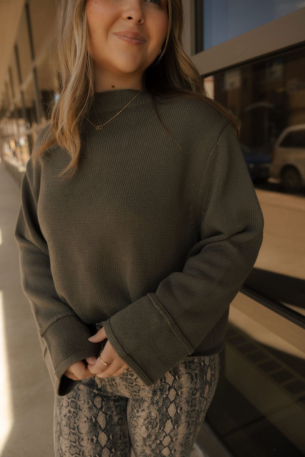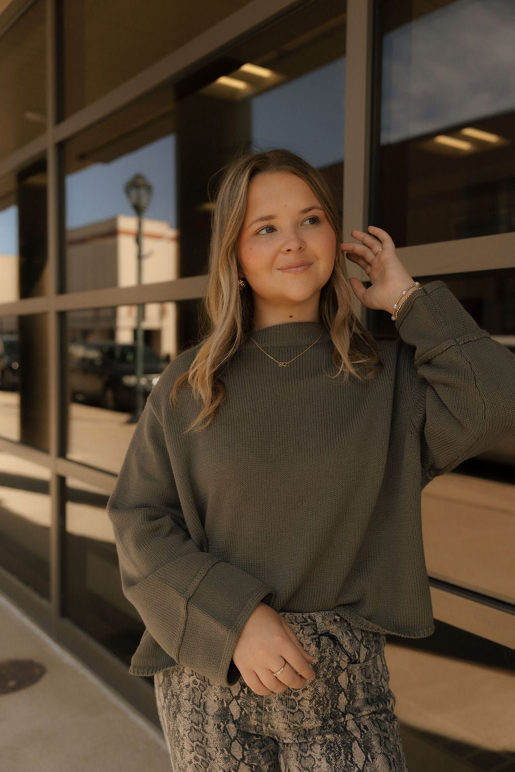 This olive ribbed sweater top offers cozy comfort with its soft fabric and long sleeves, perfect for layering during fall and winter. Its medium length provides versatile styling options, keeping you warm without extra bulk. A stylish and practical choice for cooler days.