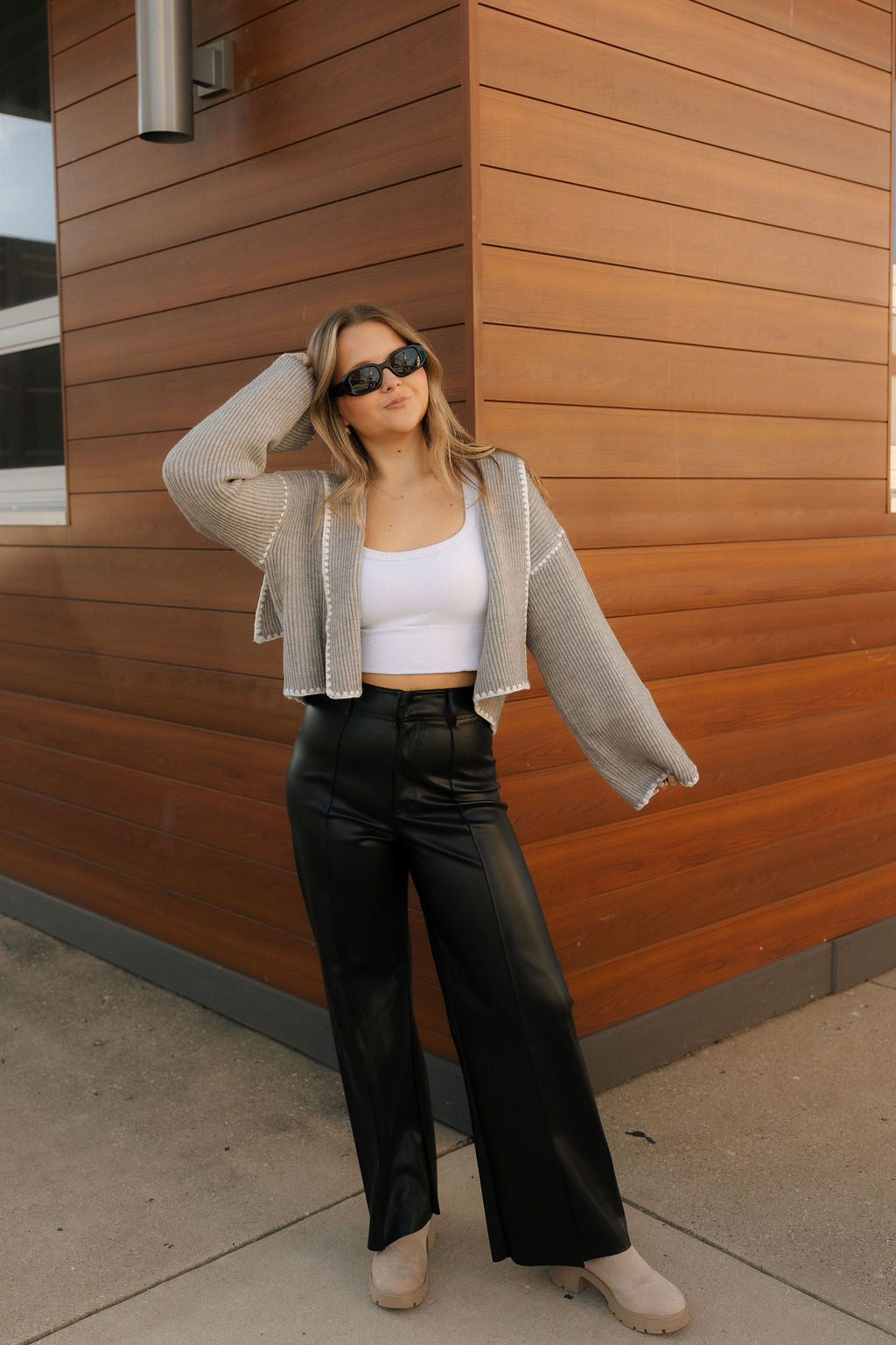 Elevate your cold-weather wardrobe with these Pintuck Faux Leather Pants in classic black. Featuring a high-rise fit for flattering comfort, they bring an edgy yet polished vibe to any fall or winter outfit. Versatile enough to pair with chunky knits or sleek boots, these pants turn heads while keeping your style effortlessly fun and bold.