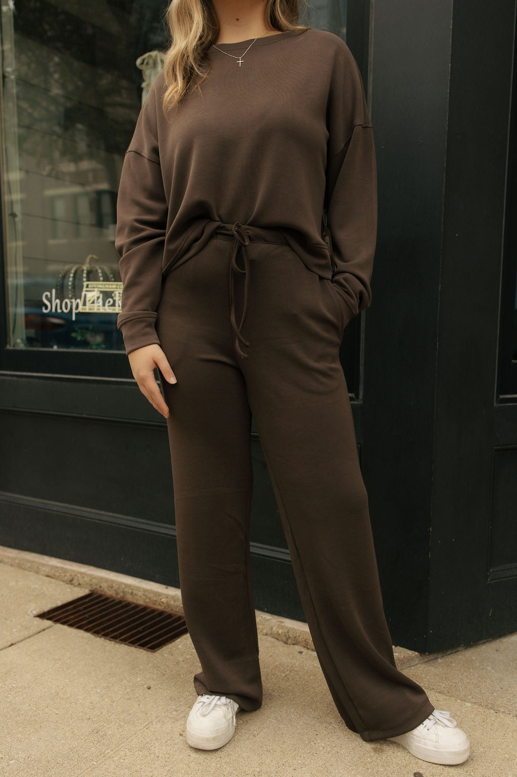 Experience all-day comfort with these Scuba Pants in rich Espresso. Featuring a soft, mid-rise fit and full-length design, they're perfect for year-round wear. Adjustable drawstrings and convenient pockets add practicality without sacrificing style.
