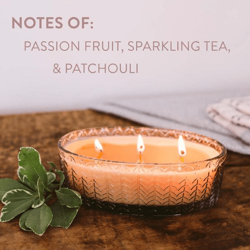 Enjoy our best-selling scent in a 3-wick candle that's chic with chevron. The oval glass of this scented candle is a playground for pattern, and the fragrance is your opportunity to make every day enjoyable. Sweet Grace is beloved for its blend of bright, fruity top notes, sparkling tea middle notes, and classic patchouli base. Light a Sweet Grace candle and feed a child today!