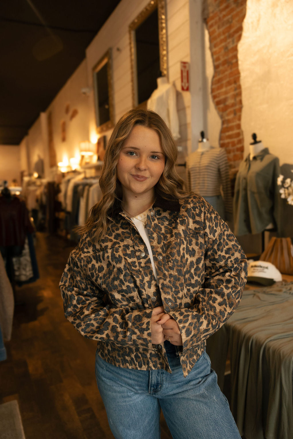 Brown Contrast Collar Leopard Jacket