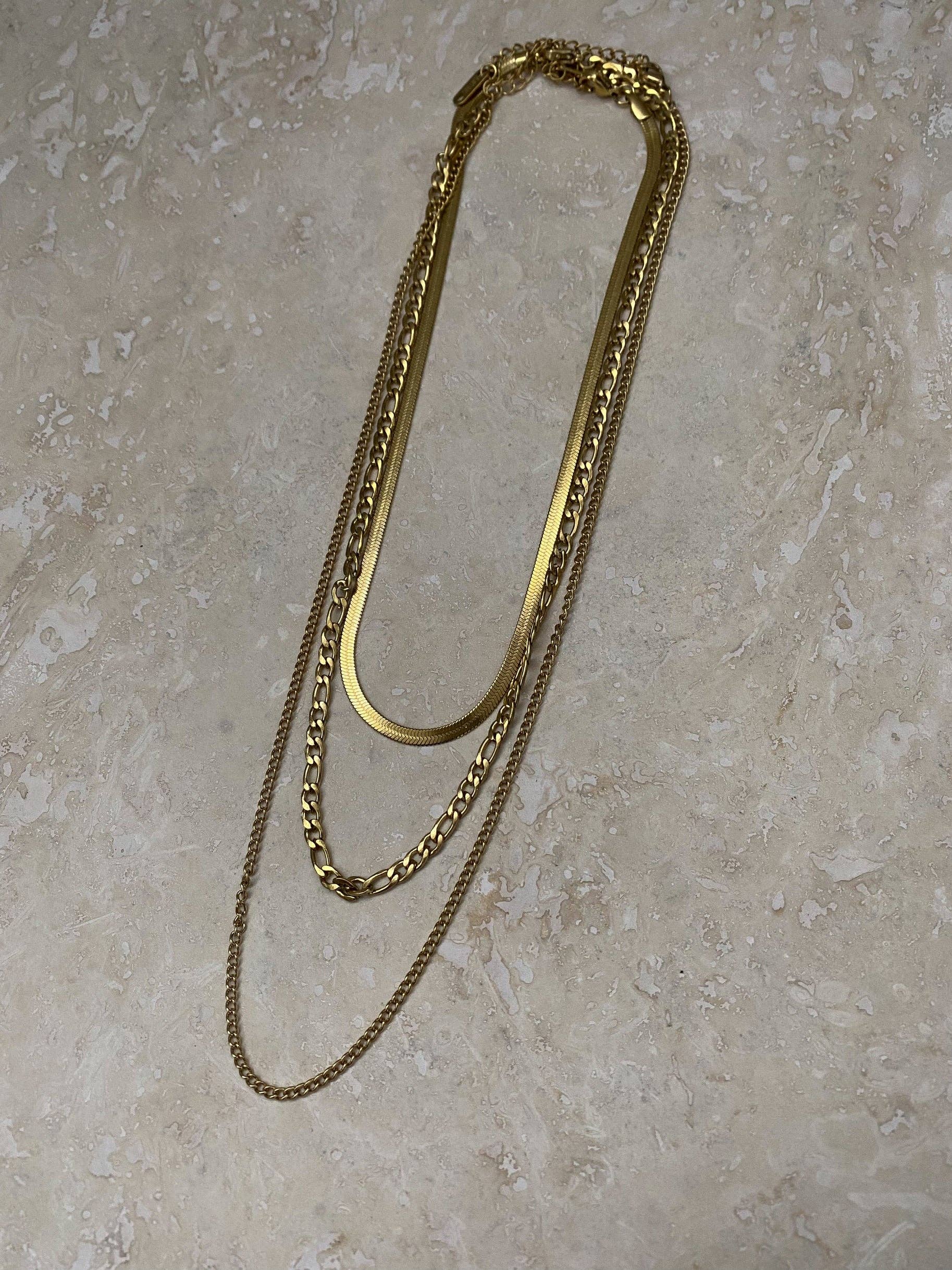 Set includes 3 chain necklaces. NOW AVAILABLE in a non-tarnishing Stainless steel or 14k gold plating.