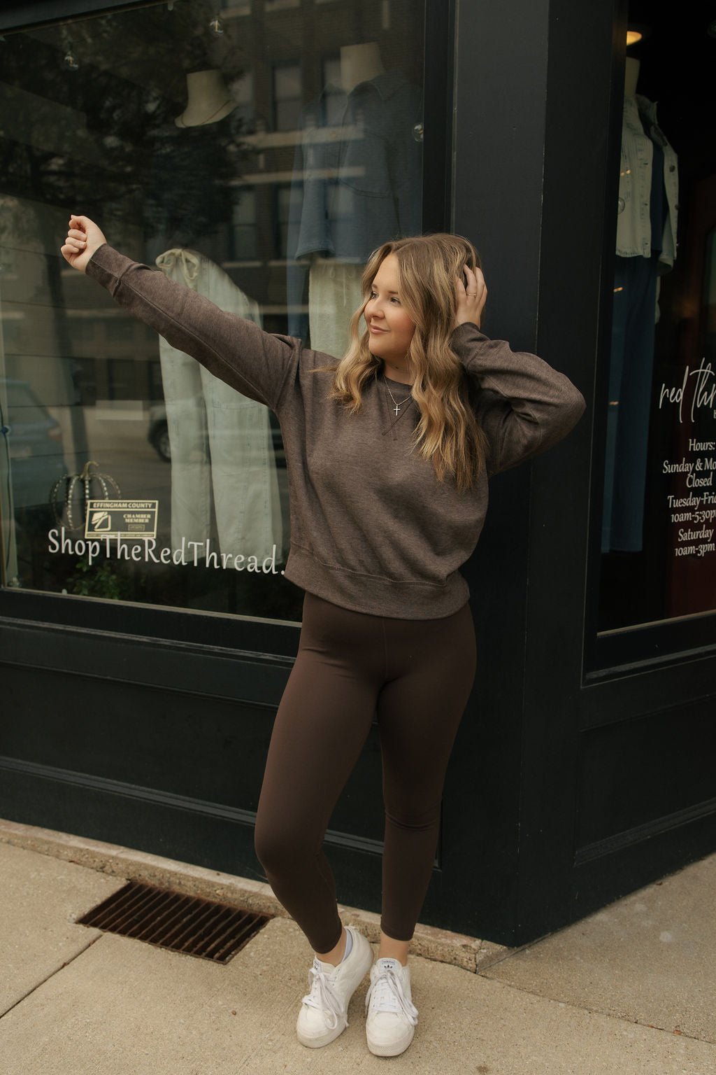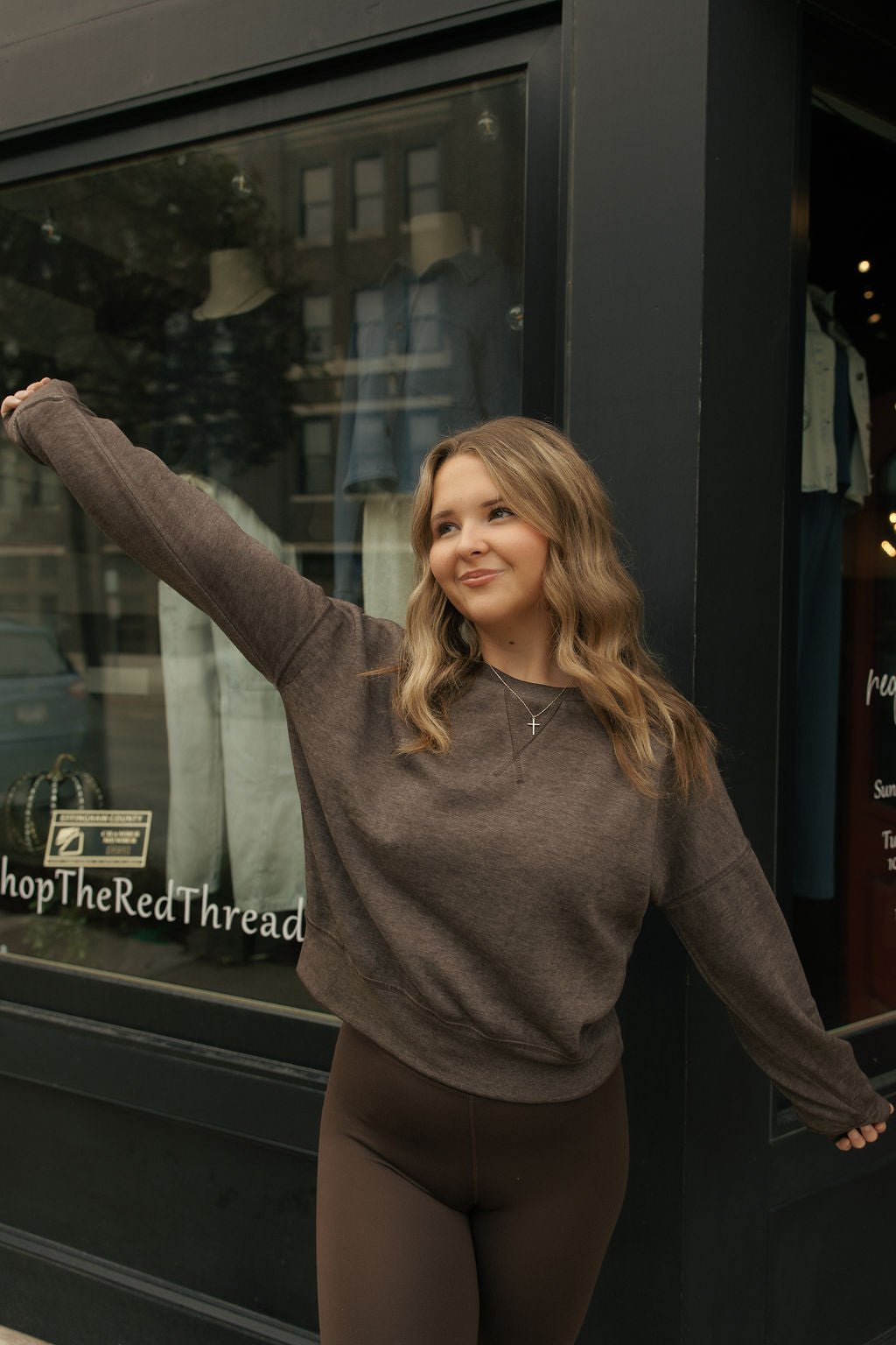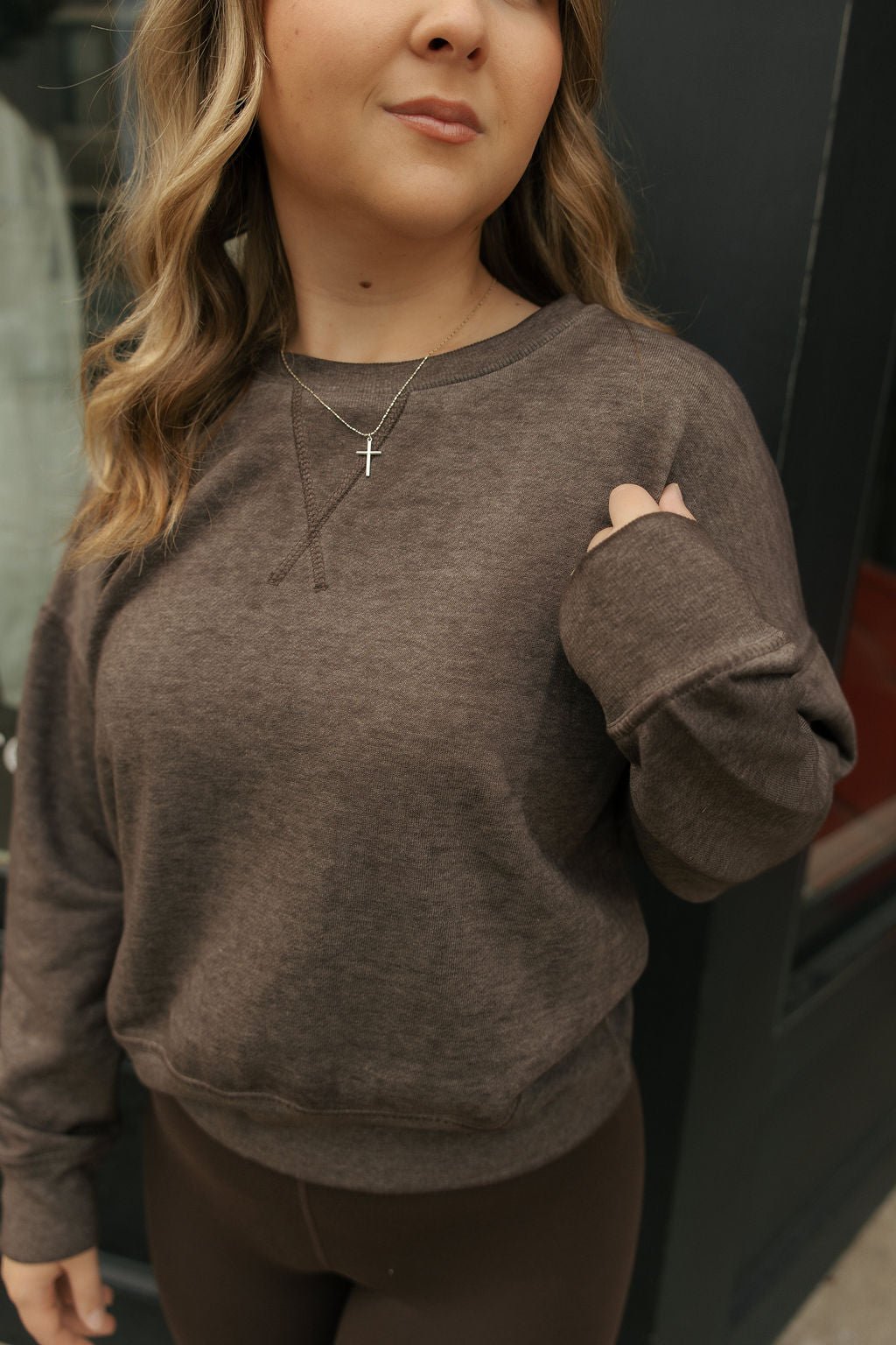 Experience all-day comfort with the Burnout Sweatshirt in rich espresso. This soft, long-sleeve top features a cozy fabric perfect for year-round wear. Its cropped, mid-length design adds a modern touch while keeping you comfortably covered. Ideal for layering or wearing on its own, it blends simplicity with a relaxed fit to complement any casual look.