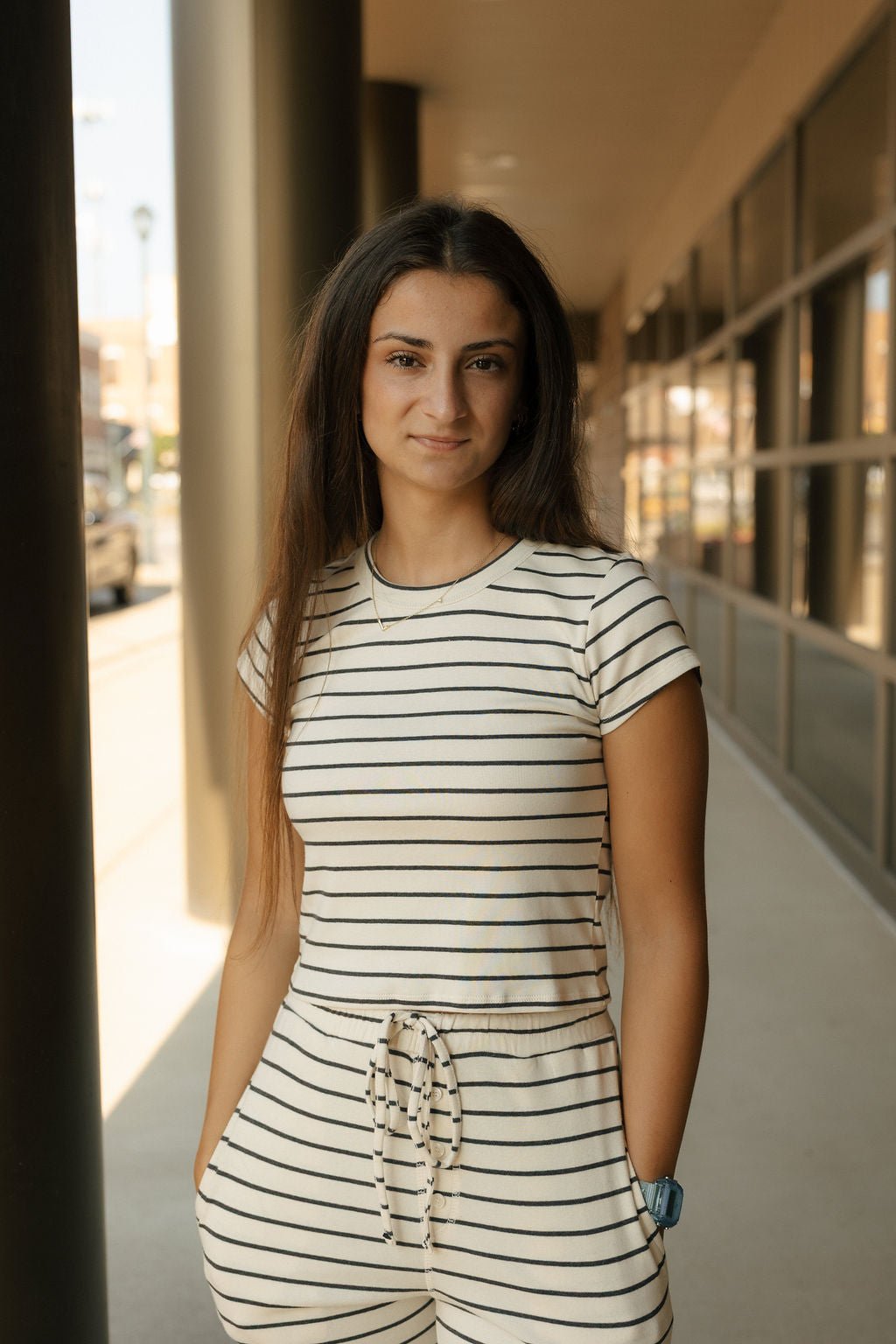 Experience effortless comfort with the Call Me Top in Cream Black. This cropped, short-sleeve design offers a versatile fit that’s perfect for lounging or everyday wear. Crafted for year-round style, its soft fabric keeps you comfortable no matter the season.