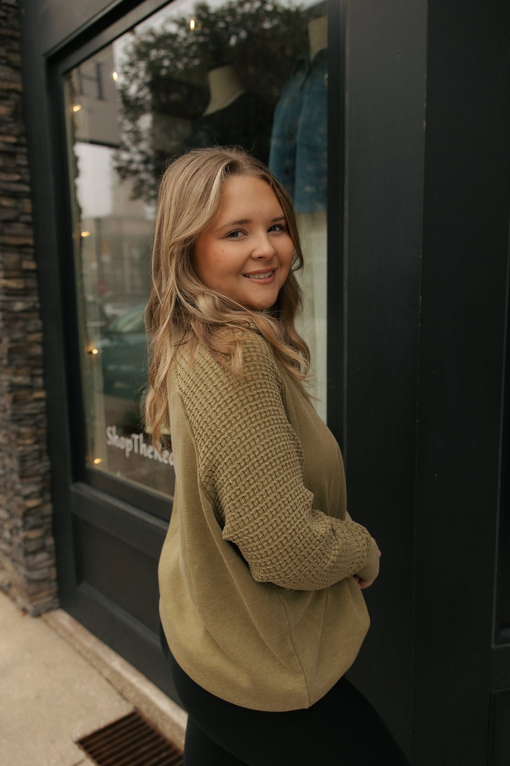 Experience all-day comfort with the Waffle Henley in green. Its soft, full-length design and flattering V-neck make it perfect for year-round wear. Lightweight yet cozy, this top effortlessly blends casual style with breathable comfort, keeping you feeling relaxed and looking great no matter the season.