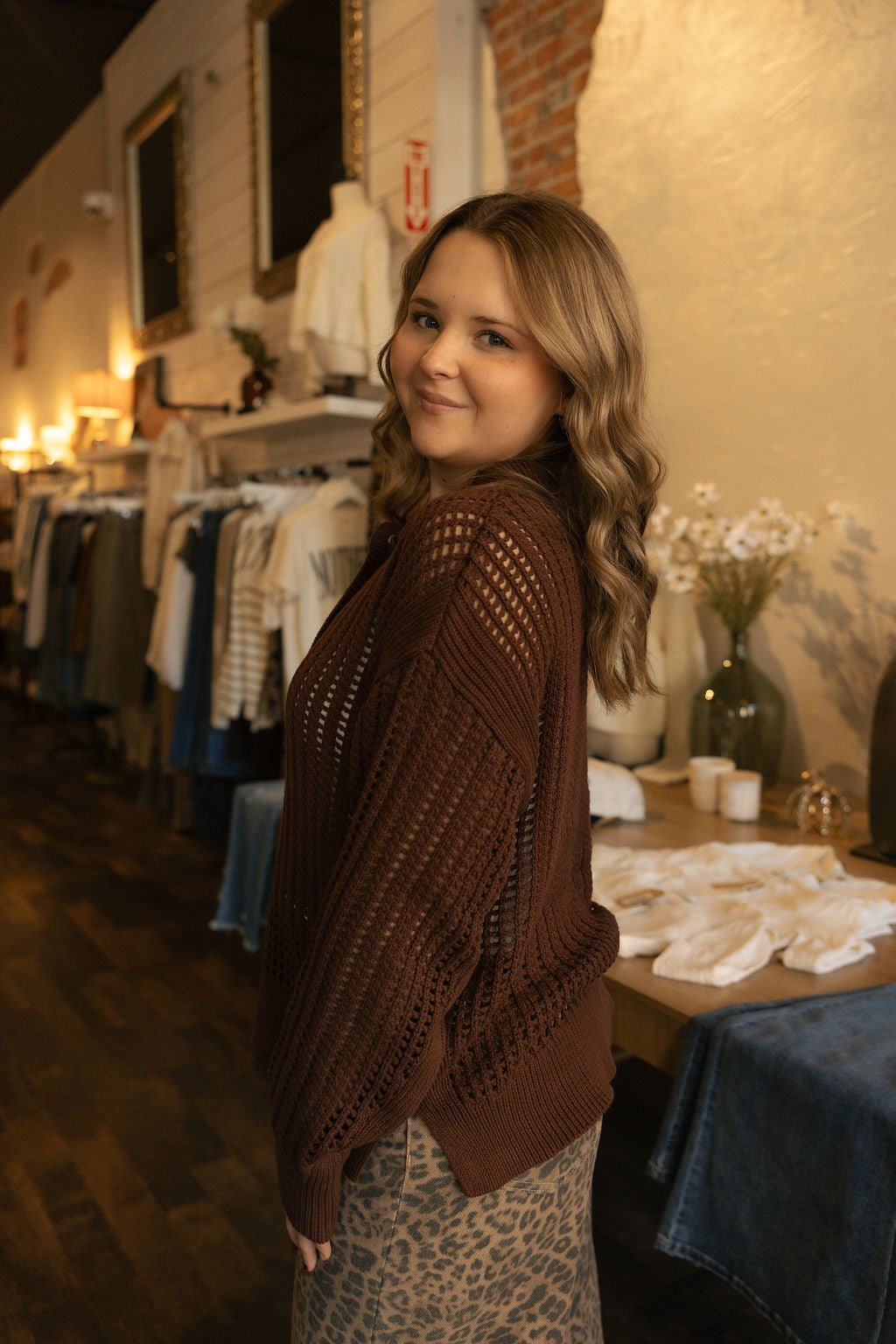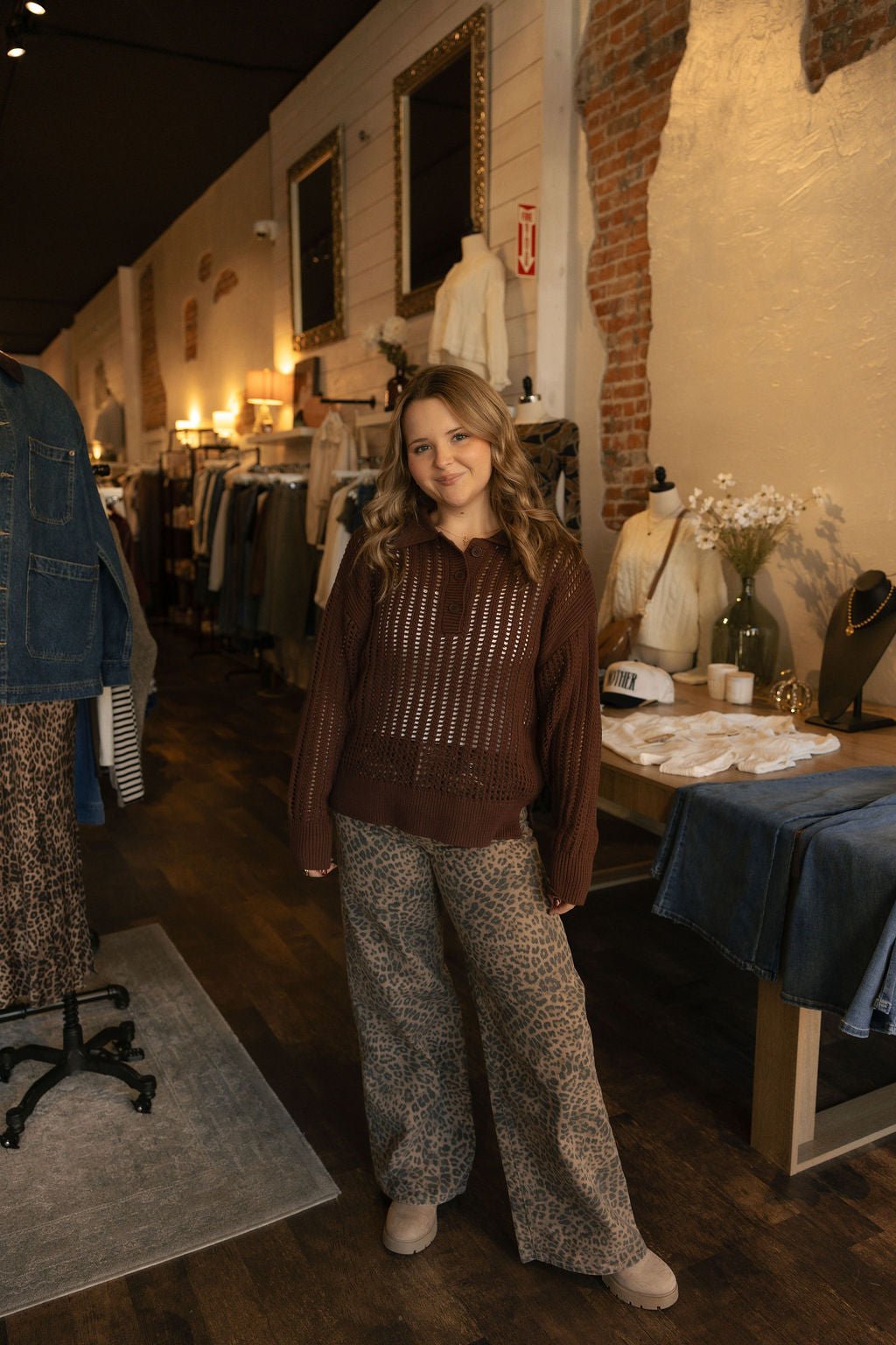This midweight collared sweater combines engineered open-stitch detailing with tortoise buttons for an elevated twist. Made with soft Sienna yarns, it layers effortlessly and adds texture to any outfit.