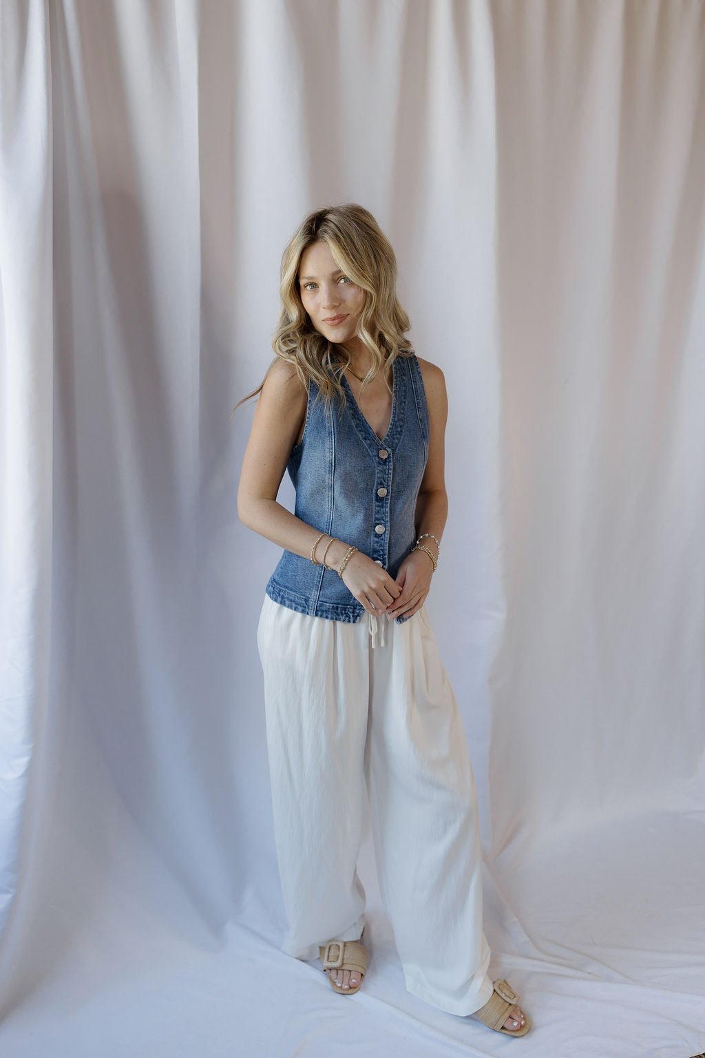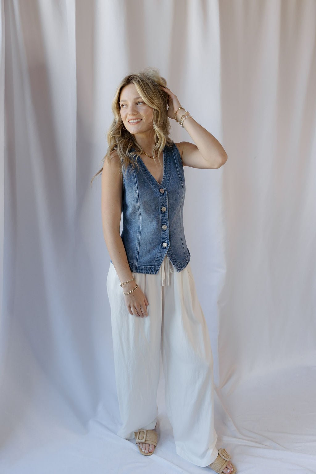 Description: The Porto Denim Vest is the perfect spring and summer layering piece, easy to style over your favorite tops for a laid-back yet elevated look. Pair it with any jeans or fun flowy pants for an effortless outfit you can dress up or down.
