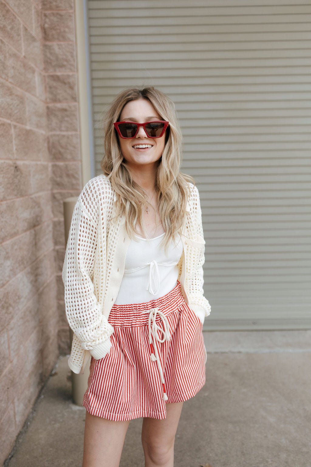 The Shoshana Jacket in Off White is the perfect addition to your beach wardrobe this spring/summer. With its relaxed fit and button down closure, it's both comfortable and stylish. The collared neckline adds a unique touch to this must-have jacket.