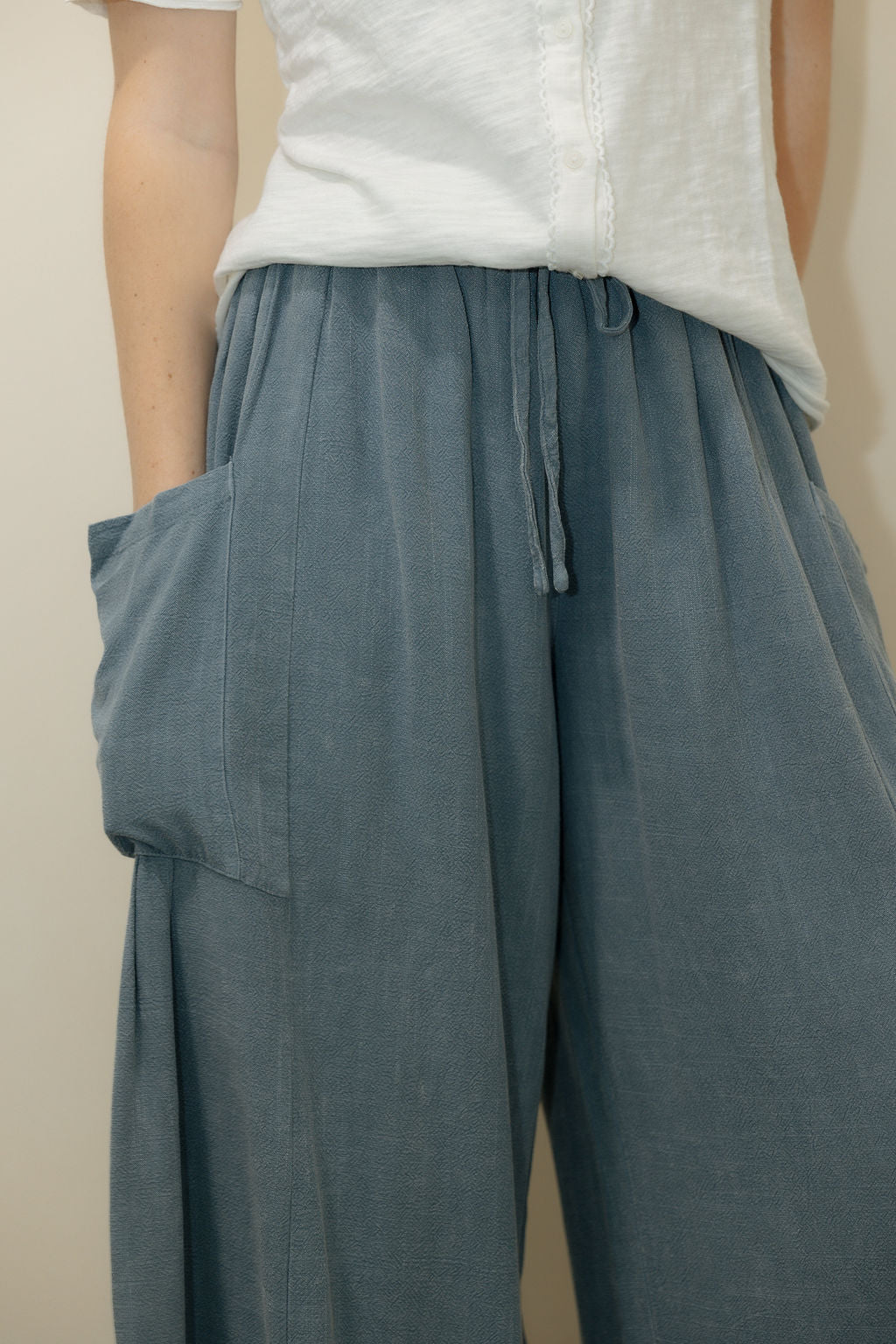 Description: Our Isla Linen Pocket Pleated Pants in Denim by Miitoshop are the perfect spring and summer staple, featuring a flowy silhouette, soft linen blend, and pleated detailing that adds an elevated touch while keeping them incredibly comfortable. Designed for everyday wear, these versatile pants can easily be dressed up or down to complement any outfit while maintaining an effortless, relaxed feel.