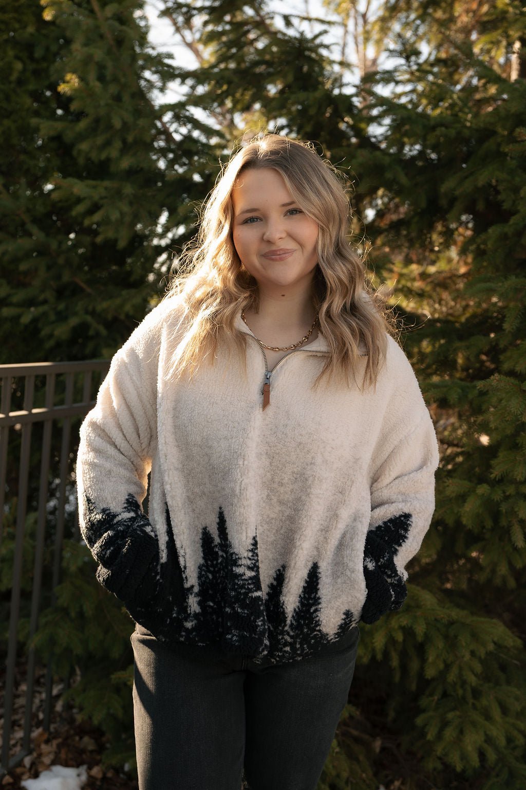 This sherpa pullover runs true to size, model wearing size small.