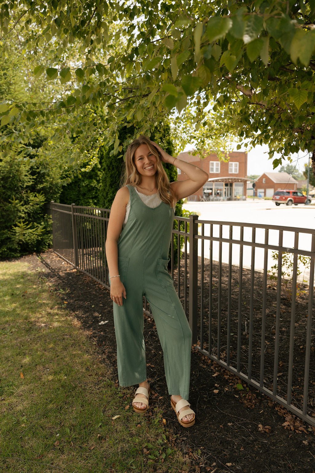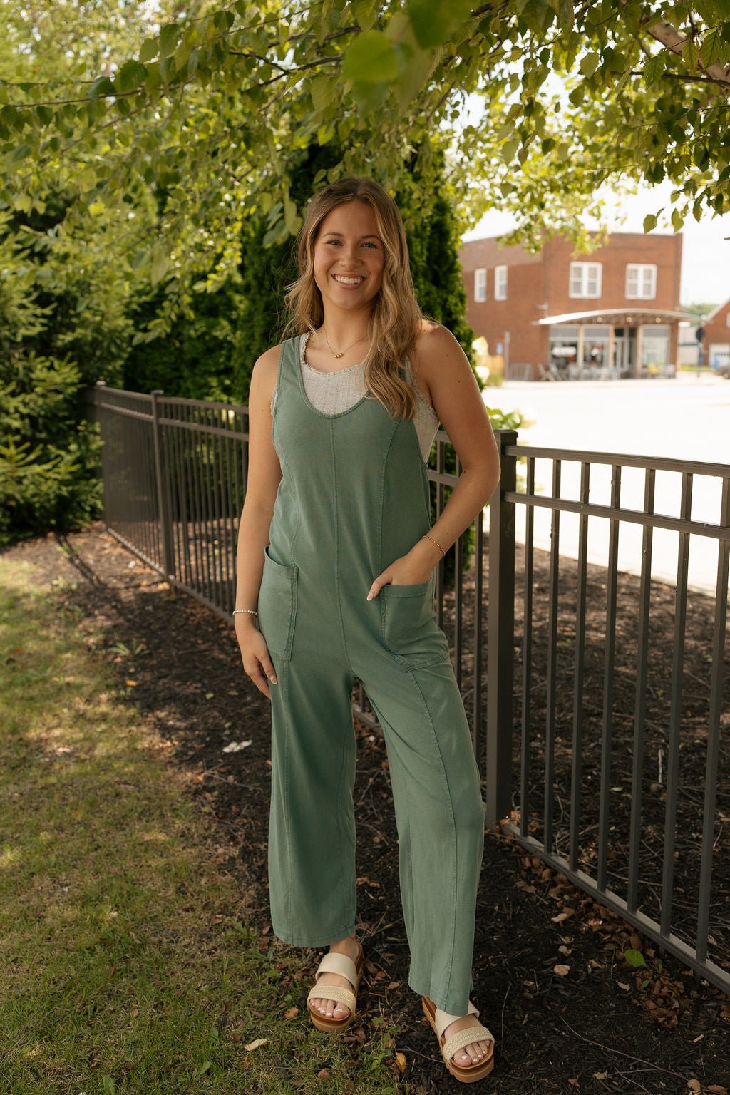 The Brasila Jumpsuit in Hunter Green by Z Supply offers year-round comfort with its soft fabric and adjustable straps for a perfect fit. Designed for versatile wear, it features convenient pockets and a relaxed silhouette, making it ideal for lounging or casual outings. Its unique style and practical details ensure you stay comfortable and chic wherever you go.