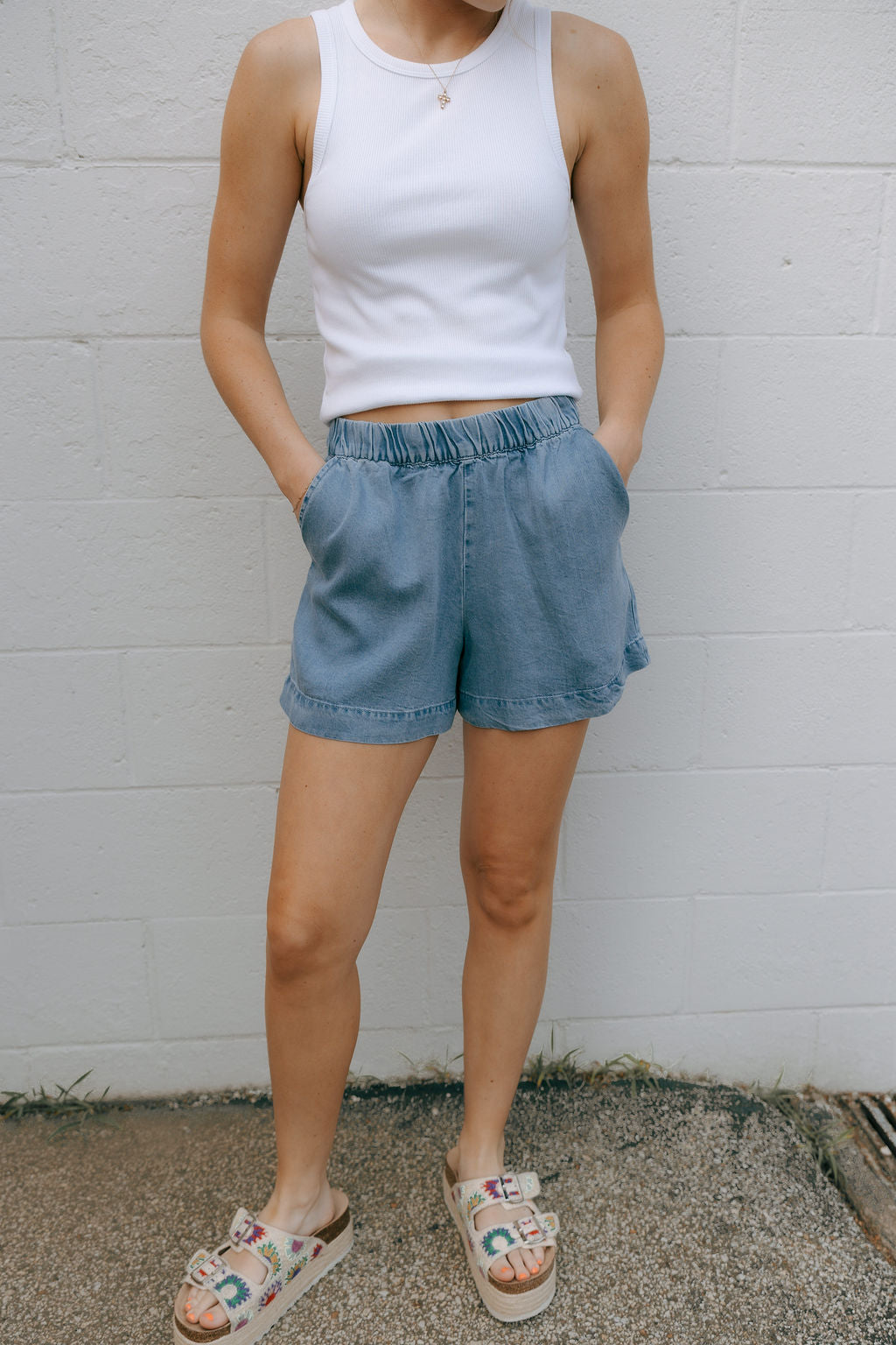These Amazonas Chambray Shorts in Sun Bleached Indigo by Z Supply offer a simple and versatile style perfect for spring and summer. Featuring a comfortable elastic waistband, they provide an easy fit for all-day wear. Their lightweight chambray fabric keeps you cool while adding a relaxed, effortless look to your warm-weather wardrobe.