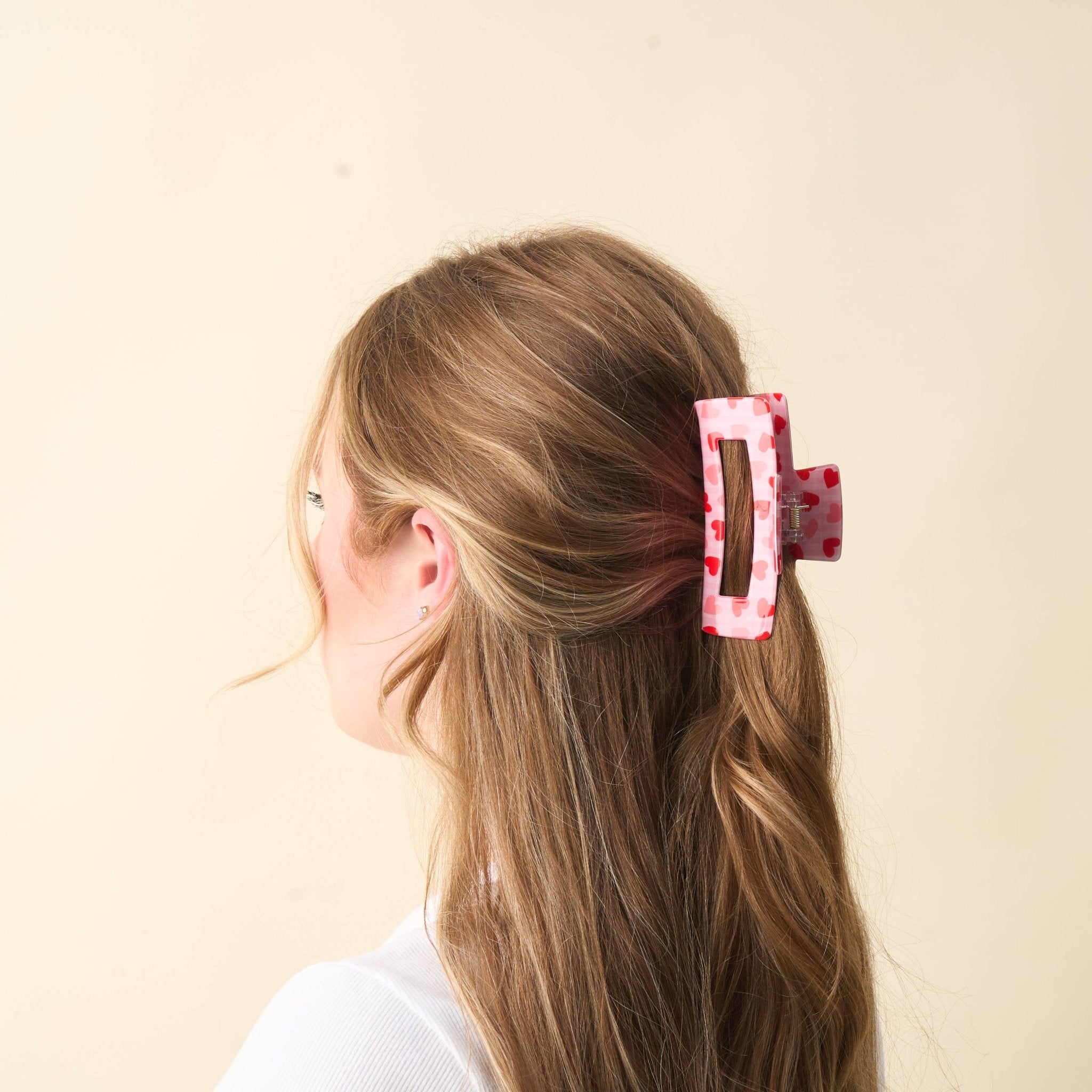Our adorable Valentine-themed claw clips are intentionally designed to add style, functionality, and a dash of festivity to your hairdos! These easy-to-use hair clips come in our signature Valentine’s Day patterns: Rose Garden and Charming Gingham, making them the perfect accessories to elevate your look for any romantic occasion. Not only do they keep your hair perfectly in place, but they also add a whimsical flair that’s sure to brighten your day. Great for gift-giving, these clips make delightful surprises for your loved ones or a sweet treat for yourself. Embrace the spirit of love and show off your charming style with every clip! Dimensions: 4" x 2.5"