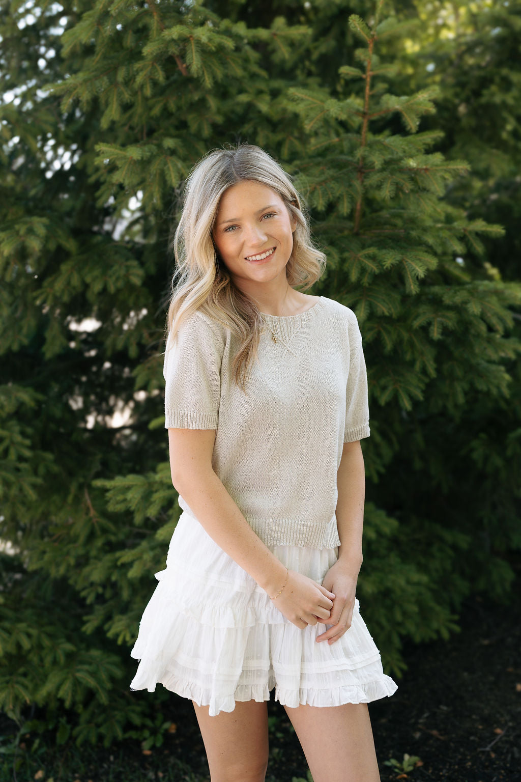The Eadin Sweater Top in Misty Gray offers a simple, comfortable fit with short sleeves perfect for year-round wear. Its versatile design makes it an easy choice for layering or wearing on its own, blending cozy style with everyday practicality.