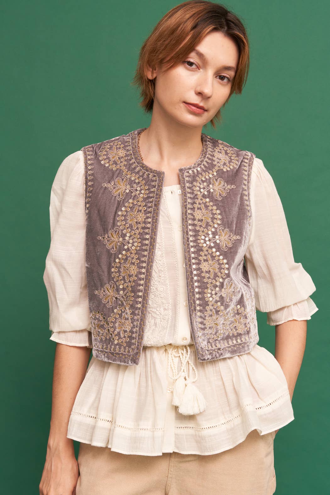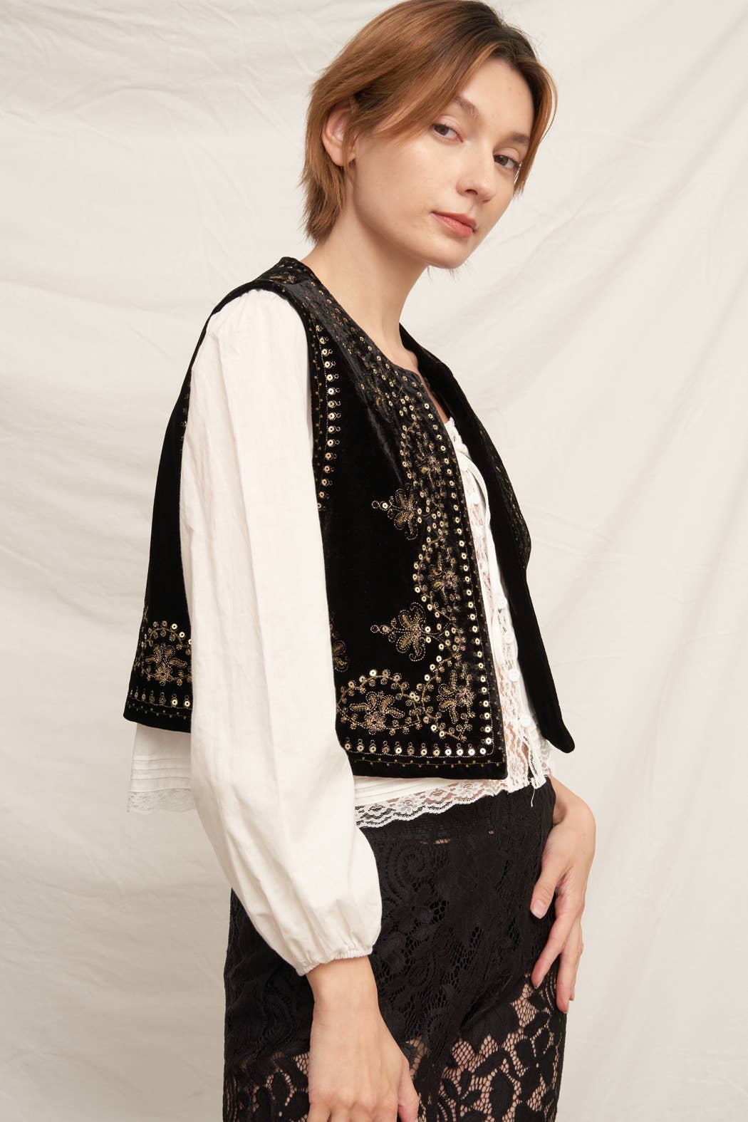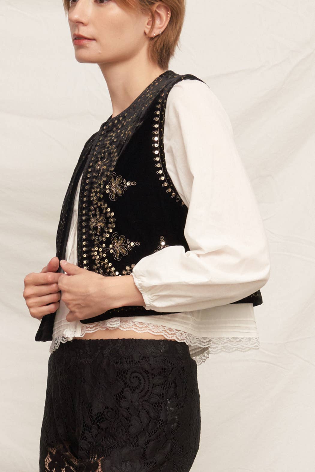 Embroidered Sequin Velvet Vest *final sale