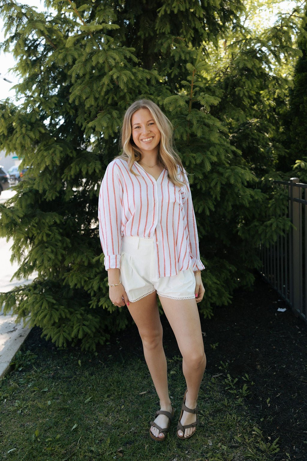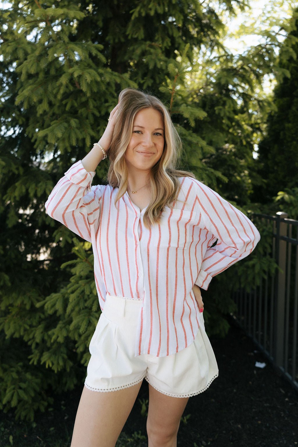 Step into spring and summer with these unique Pleated Lace Trim shorts in white. Fun and flirty, these shorts boast delicate lace trim and convenient back pockets. Elevate your warm-weather style with these cute and versatile shorts.
