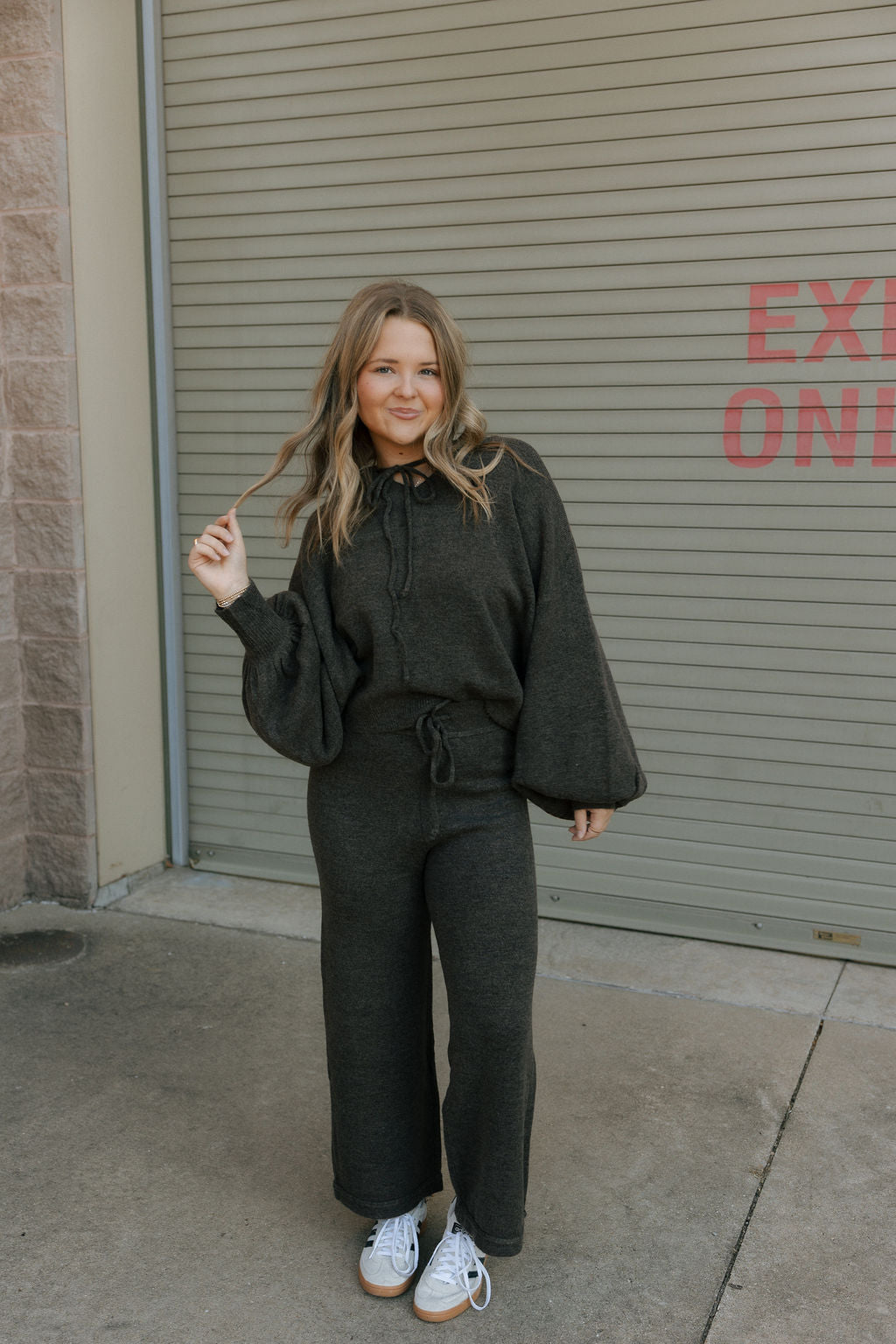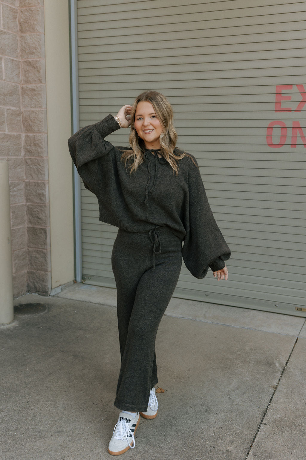 Experience cozy comfort with the Two Tone Sweater Pants in Chocolate. These high-rise pants feature an elastic waistband and an adjustable drawstring for a personalized fit. Perfect for fall and winter, they combine warmth and style effortlessly.