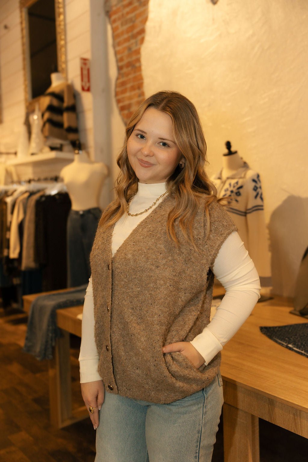 Kaycie Button Sweater Top, Mocha