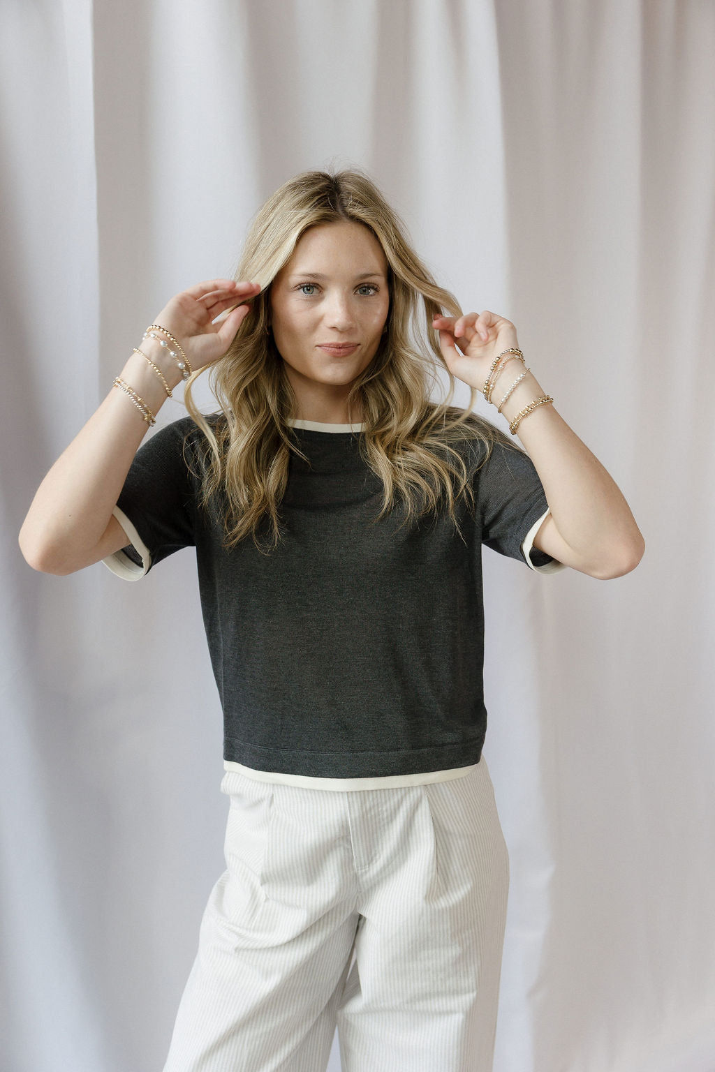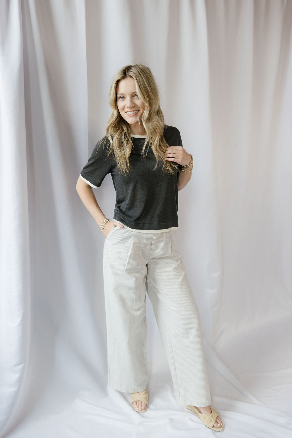 Description: Our Faye Layered Top in Charcoal is an effortlessly elevated staple, featuring soft layered detailing that adds dimension while keeping the look simple and comfortable. Perfect for spring and summer or everyday wear, it pairs easily with any jean for a polished outfit or a flowy pant for a more relaxed, laid-back vibe.