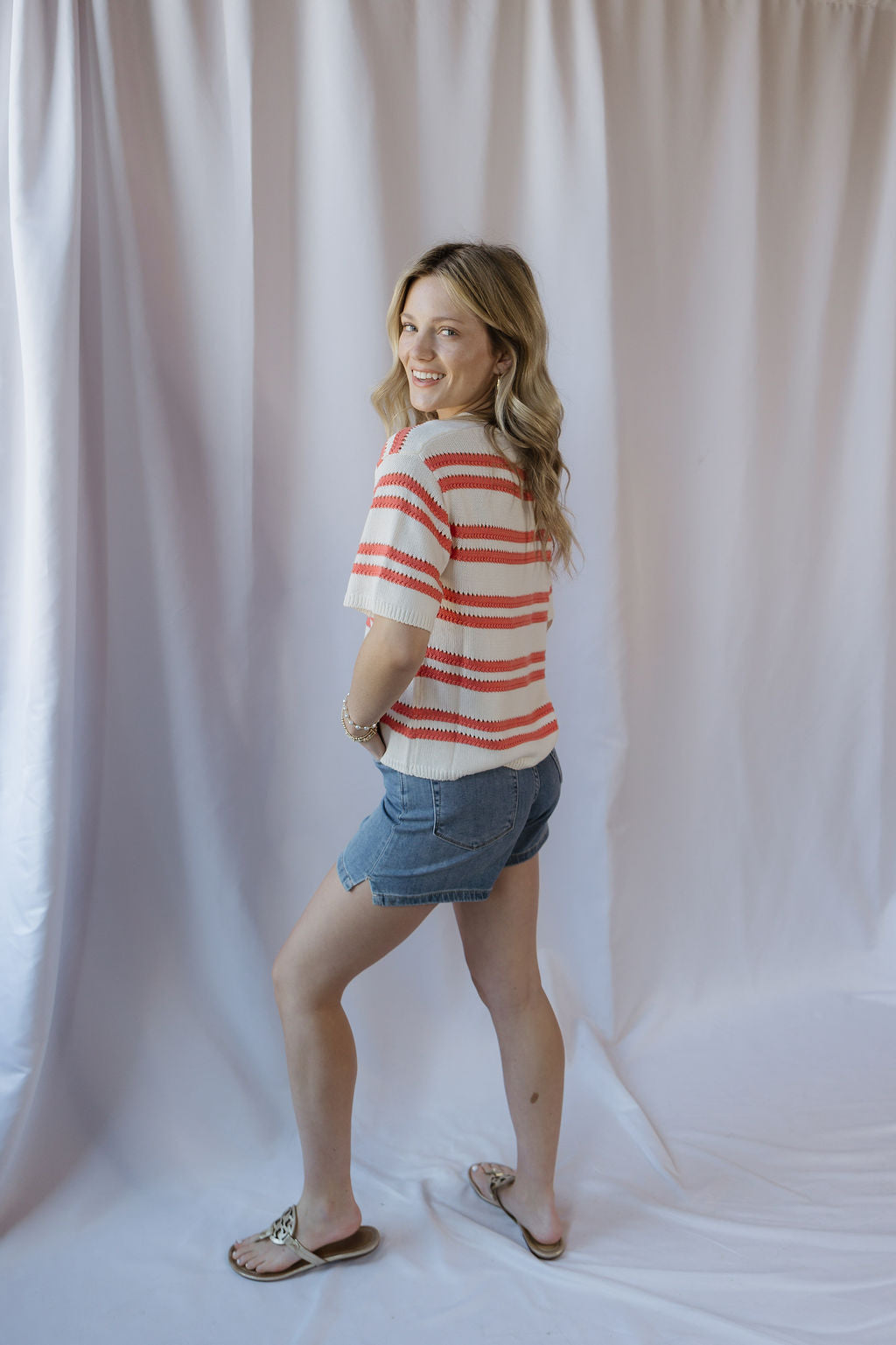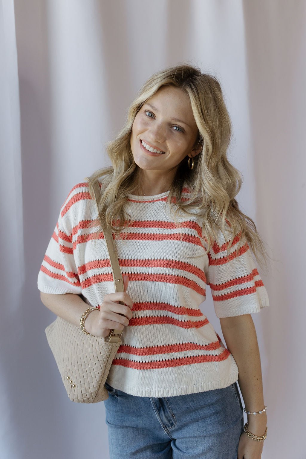 Description: Our Prado Stripe Sweater Tee in Gelato is the perfect lightweight piece for spring and summer, featuring soft stripes that give it a fun, effortless vibe. Easy to pair with any jeans or flowy pants, it’s a go-to top for both laid-back days and elevated everyday looks.