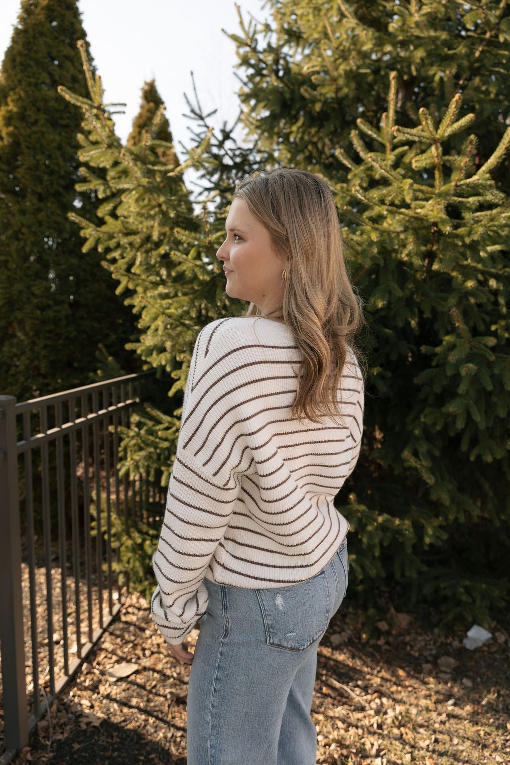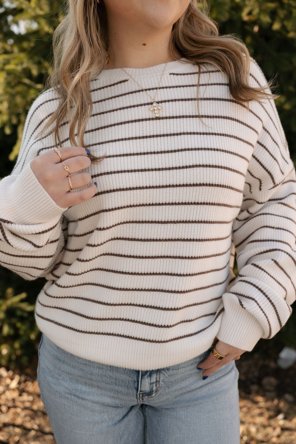 Style Tip: Pair with light or dark wash denim and ankle boots for an easy weekend look, or dress it up with a midi skirt and statement accessories for casual brunch plans. The neutral stripe makes it a seamless addition to any fall or winter wardrobe.