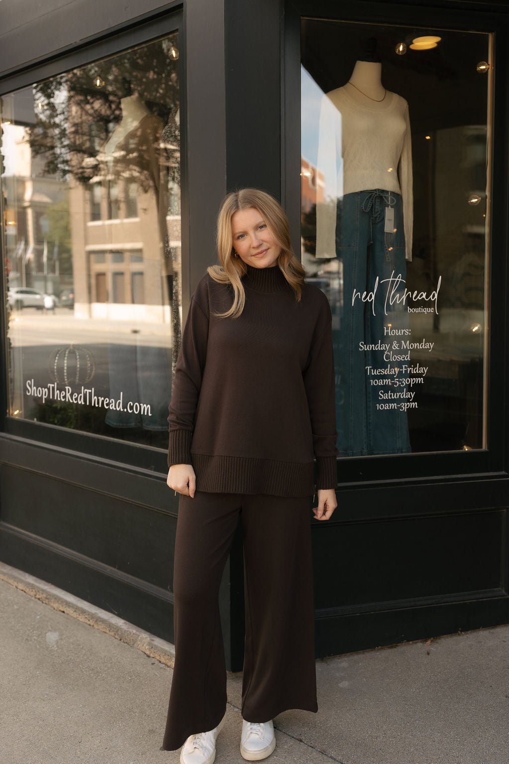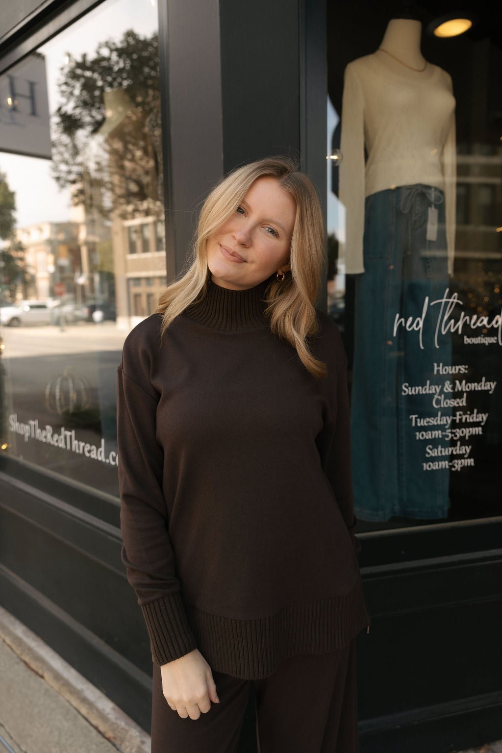Designed in sleek midweight knit, this mock neck has a relaxed fit you’ll always reach for. Ribbed trim adds subtle texture, while side zips let you adjust the profile; loose and laid-back or tucked and styled. Set with these bottoms!
