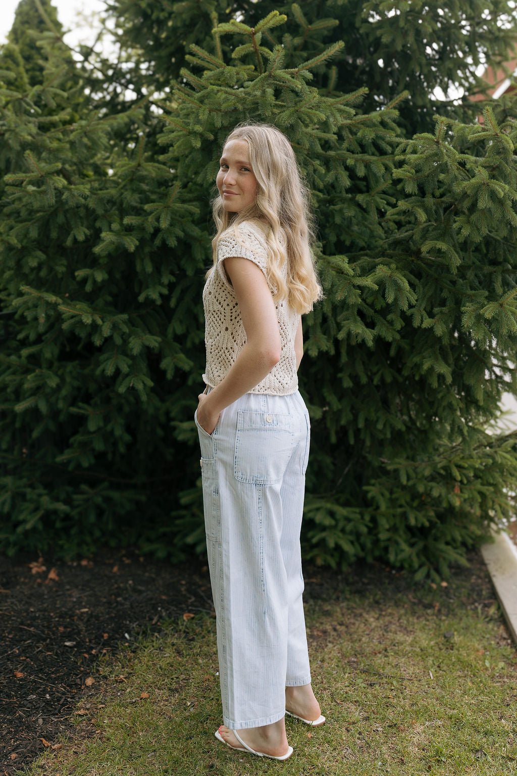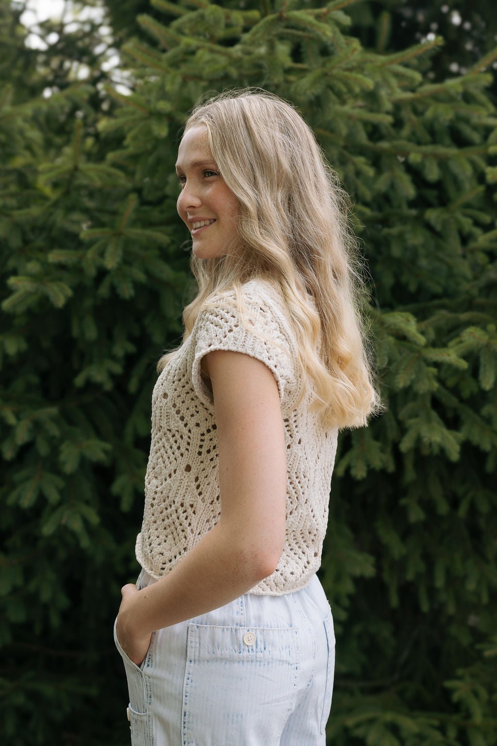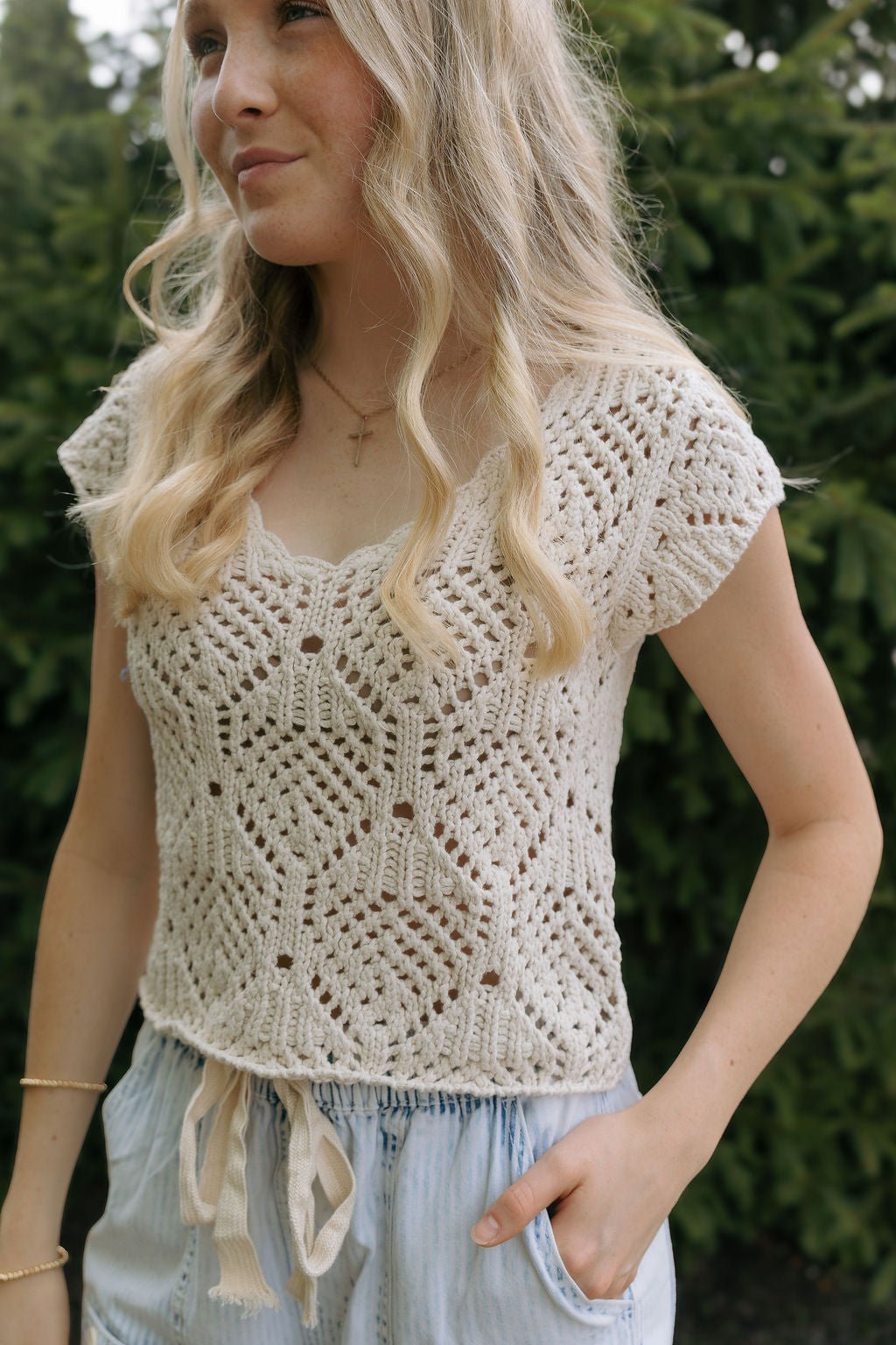Introducing the Kendra Crochet Top in Mauve. Perfect for the spring/summer season, this fun top features a cropped length and round neckline that will add a unique touch to your wardrobe. Stay stylish and comfortable all day long.
