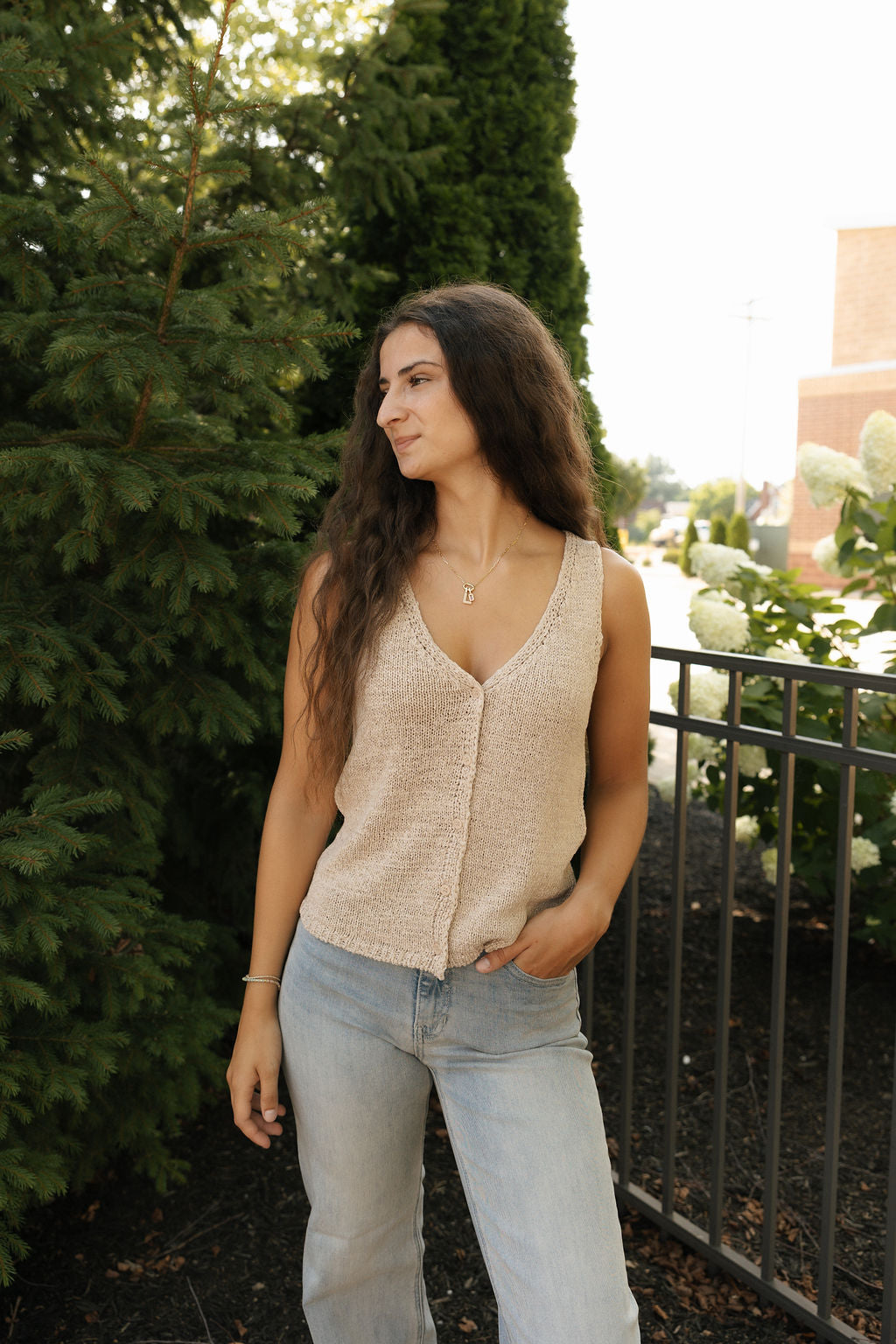 Layer up in style with the Mage Sweater Vest—a cozy-chic piece that blends classic structure with a modern twist. Made from a soft, chunky knit, this vest features a deep v-neckline, ribbed trim, and a relaxed fit that’s perfect for layering over tees, blouses, or dresses. The natural hue makes it a versatile closet staple for effortless year-round styling.