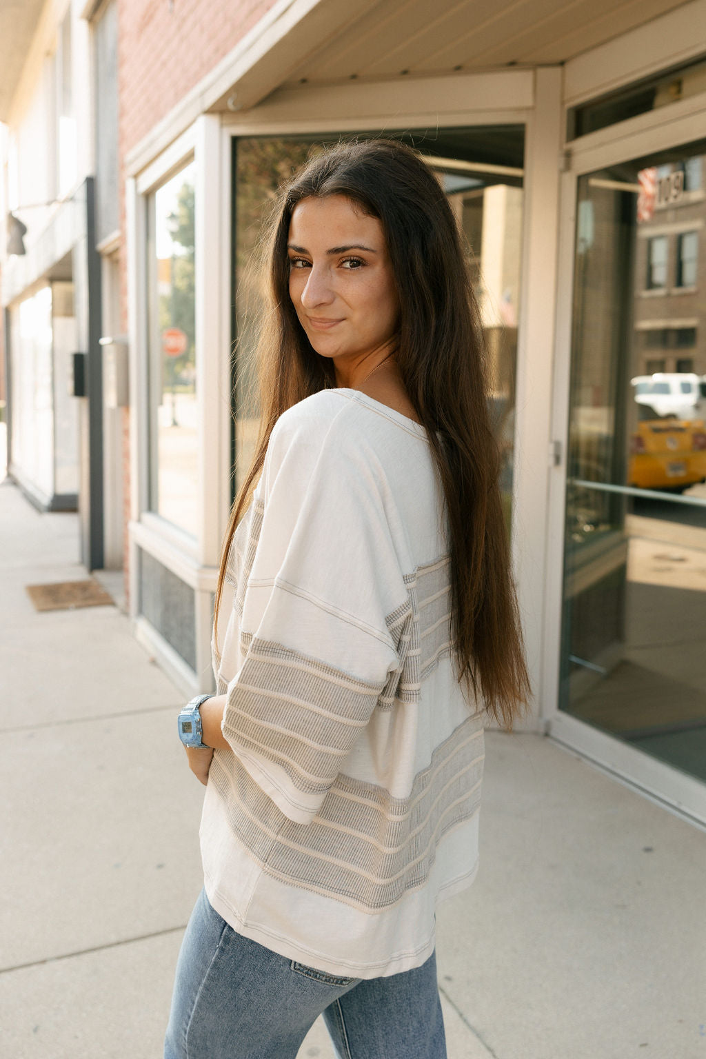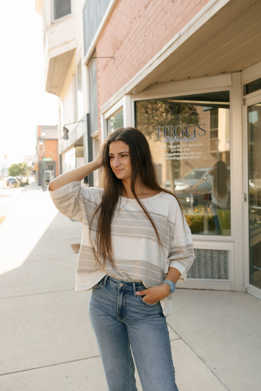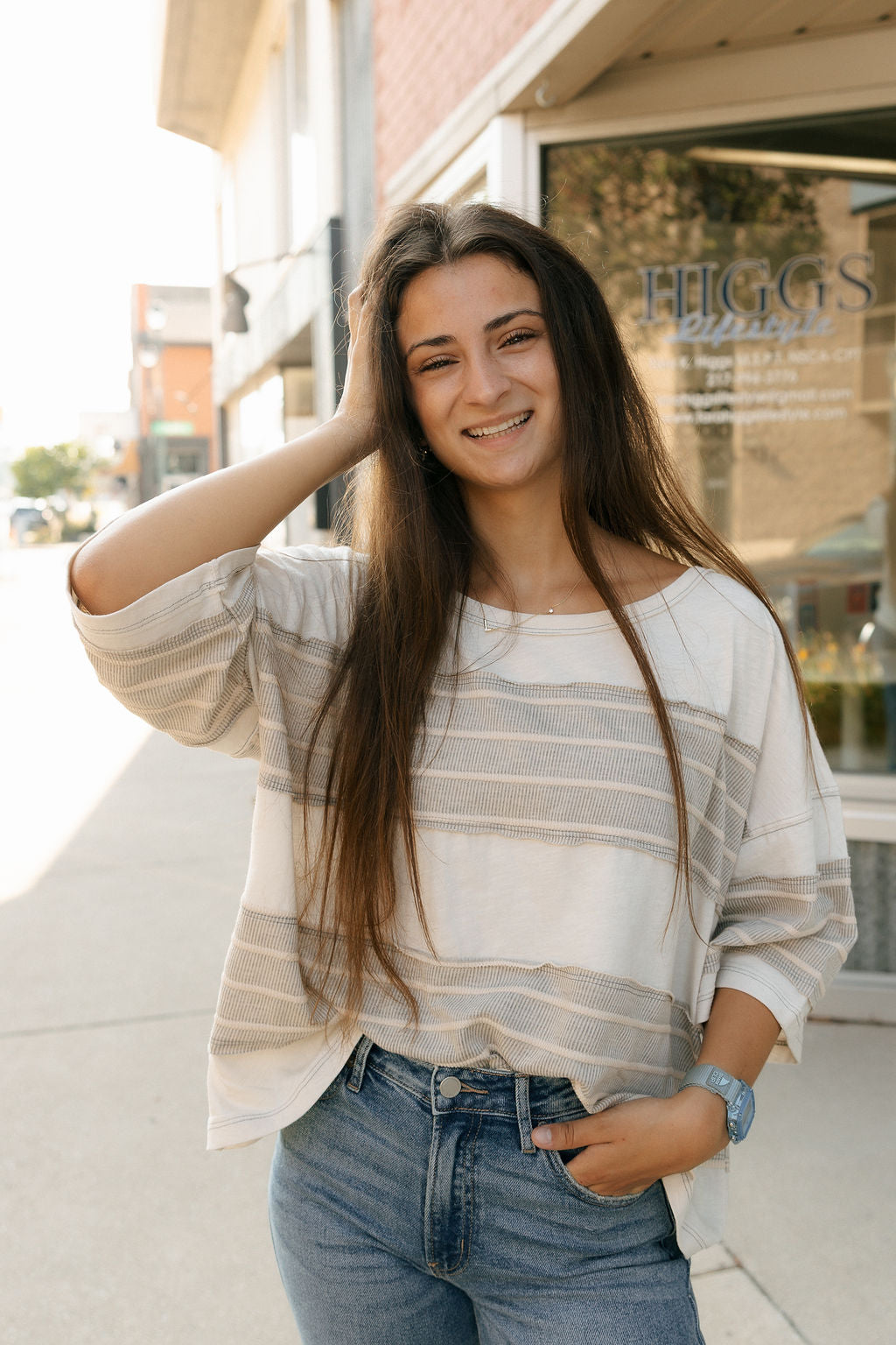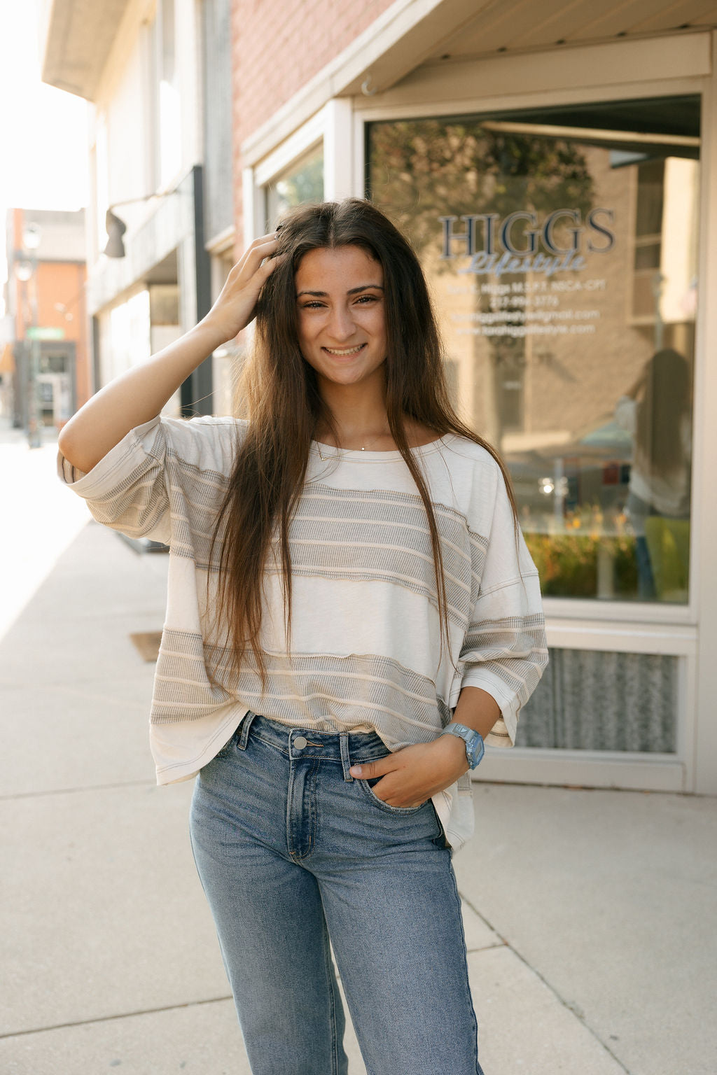 The Kahan Stripe Top features a simple, short-sleeve design crafted for year-round versatility. Its timeless stripes and relaxed fit make it easy to pair with any outfit, providing both comfort and style across seasons. A unique staple that adapts seamlessly to your everyday wardrobe.