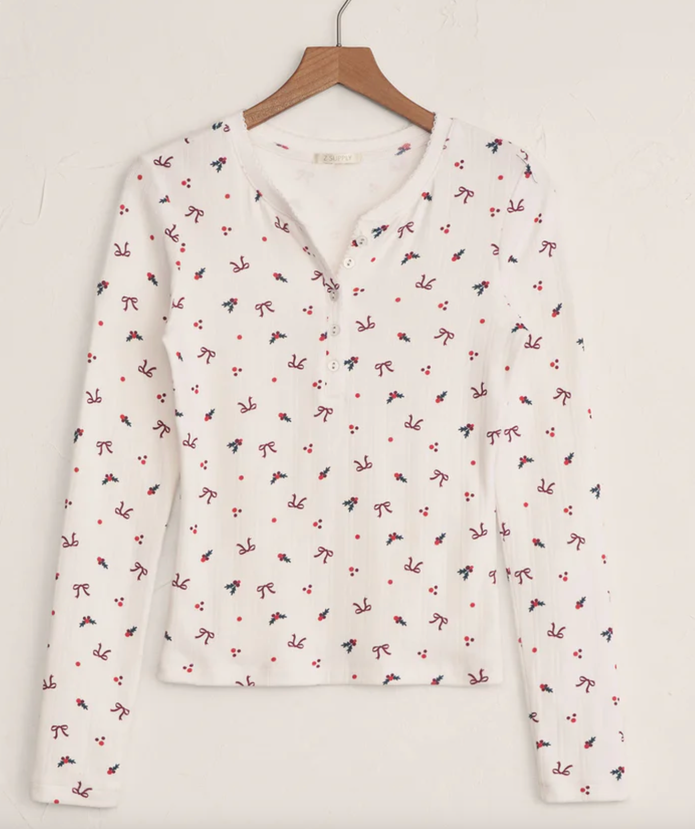 Designed in the same silky-soft pointelle, this short sleeve henley is fitted and versatile. Style it with matching bottoms or denim for a cozy take on everyday dressing.