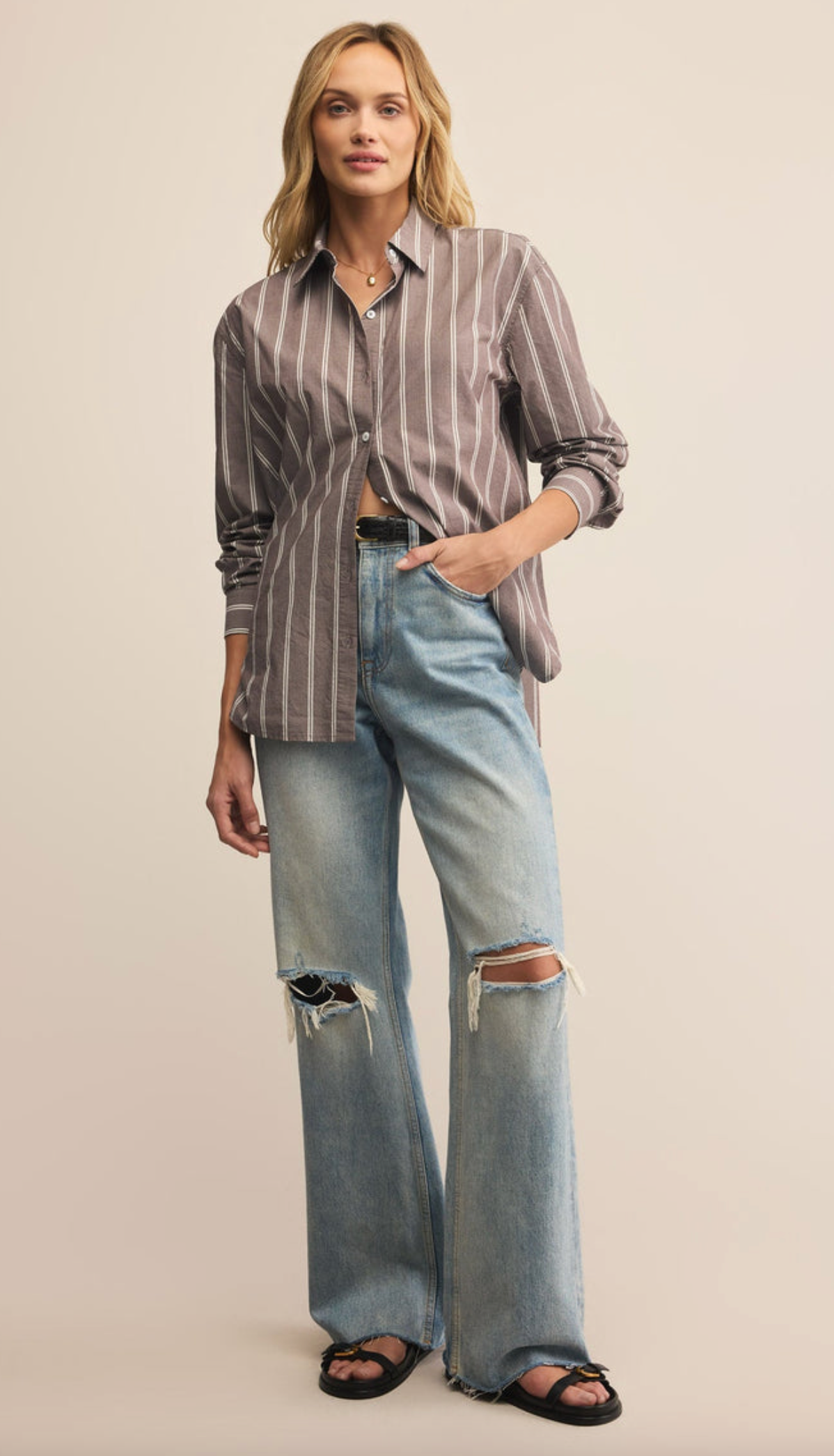 Classic and clean, this relaxed, stripe button-up is made from our new yarn-dyed cotton poplin with a crisp feel and lightweight design. It's a closet staple that balances polish and ease.