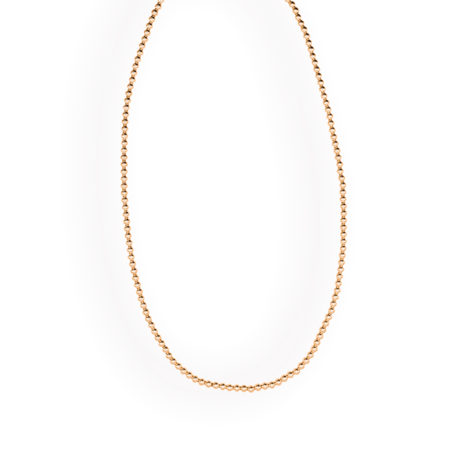 A classic elegant staple our 3MM gold beaded stretch necklace. Available in a variety of lengths.