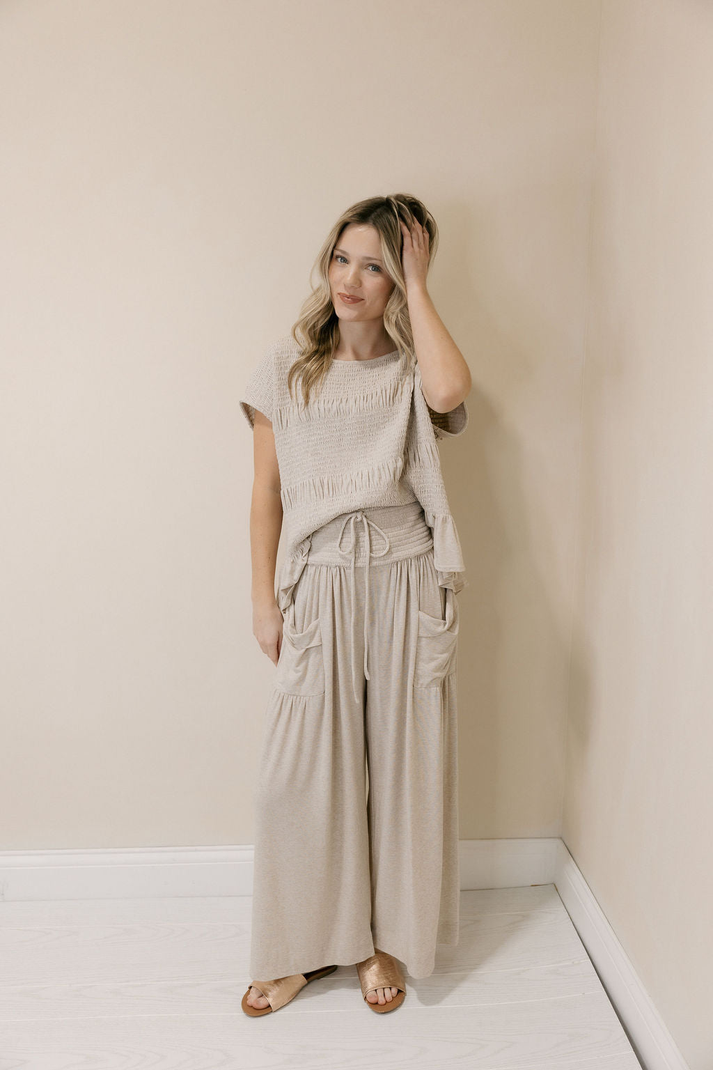 Description: Our Good Feels Knit Set in Taupe by Hem and Thread is the perfect lightweight set for spring and summer, designed with a soft, comfortable knit that’s ideal for everyday wear or relaxed lounging. Effortlessly versatile, this easygoing set can be dressed up with accessories or kept casual for a laid-back look that still feels put together.