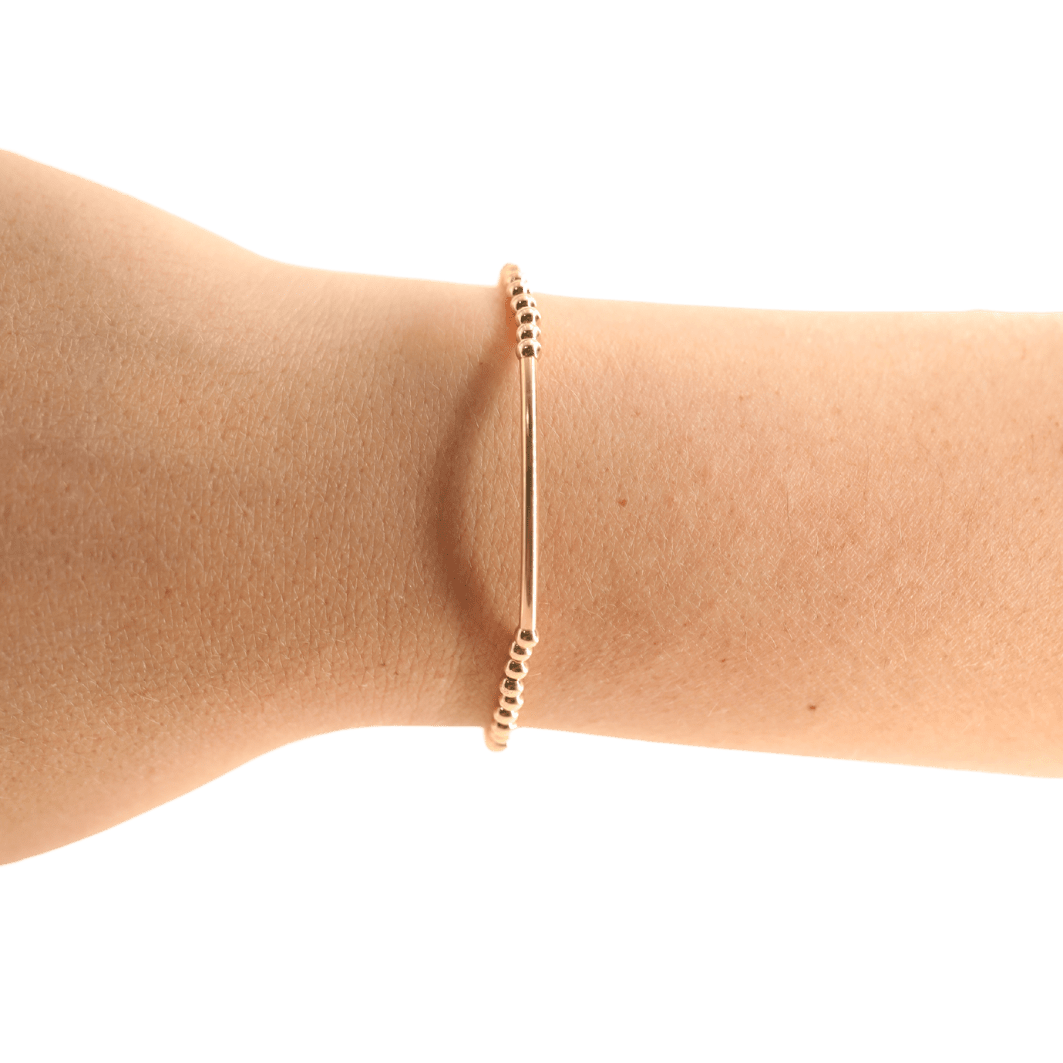 3mm gold beaded bracelet with gold bar accent.