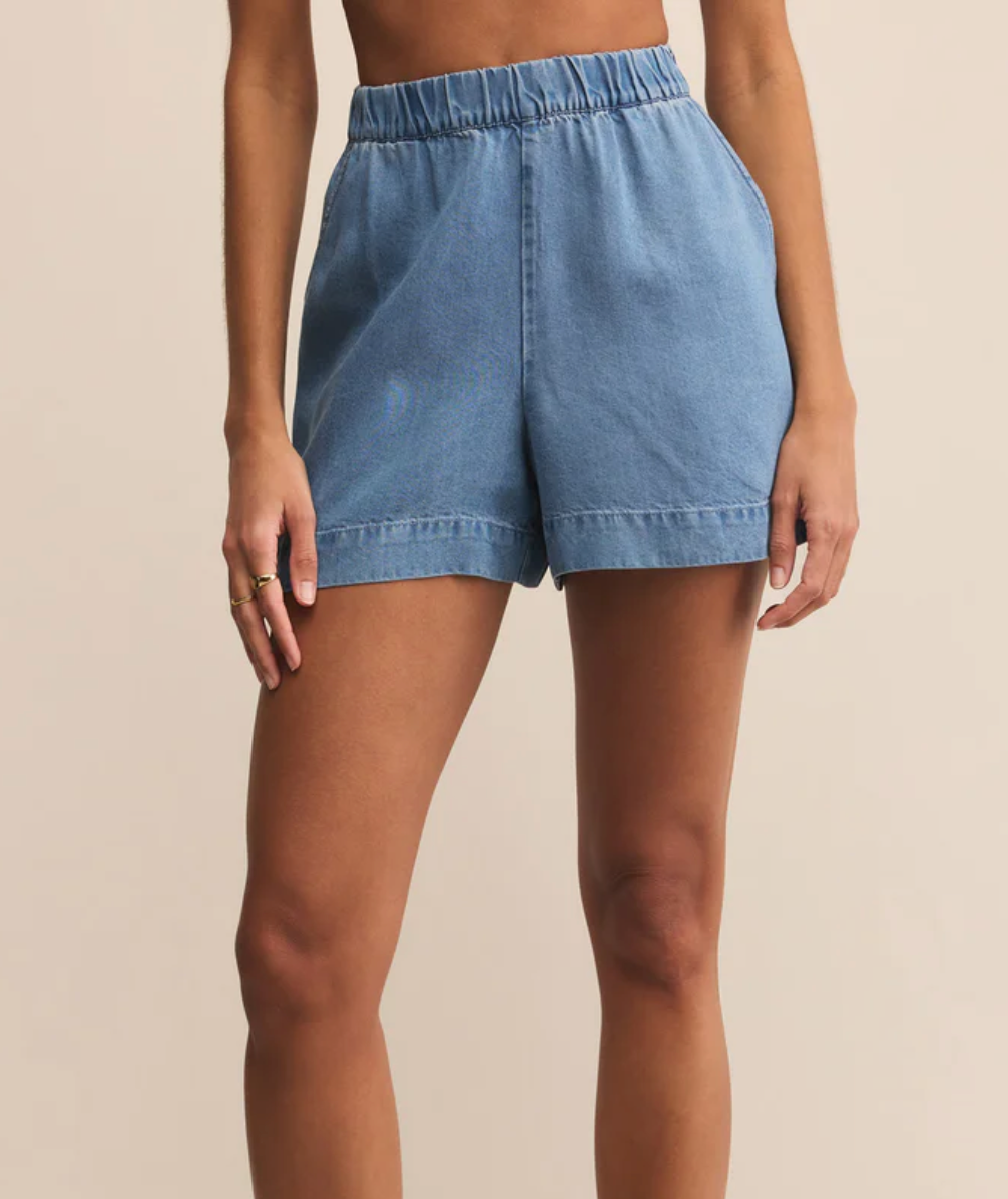These Amazonas Chambray Shorts in Sun Bleached Indigo by Z Supply offer a simple and versatile style perfect for spring and summer. Featuring a comfortable elastic waistband, they provide an easy fit for all-day wear. Their lightweight chambray fabric keeps you cool while adding a relaxed, effortless look to your warm-weather wardrobe.