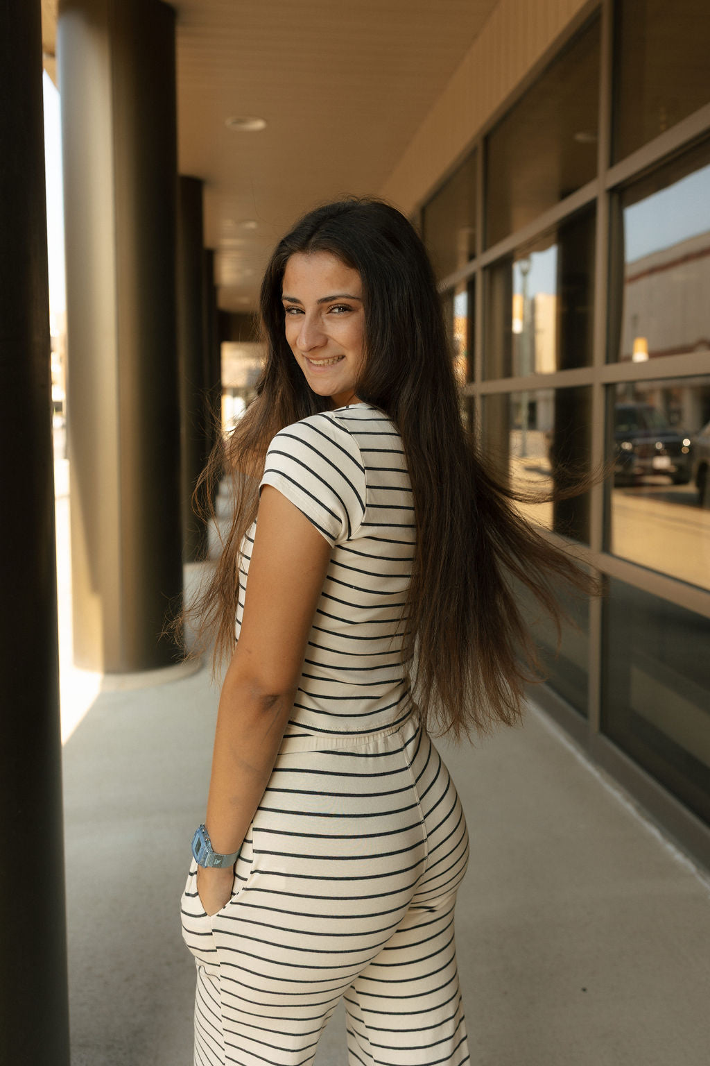 These Call Me Stripe Pants in Cream and Black offer a comfortable, high-rise fit with an adjustable drawstring for a personalized feel. Designed for year-round wear, their full-length cut and practical pockets make them perfect for lounging or casual outings. Effortlessly stylish and functional, they blend ease and versatility in one unique piece.