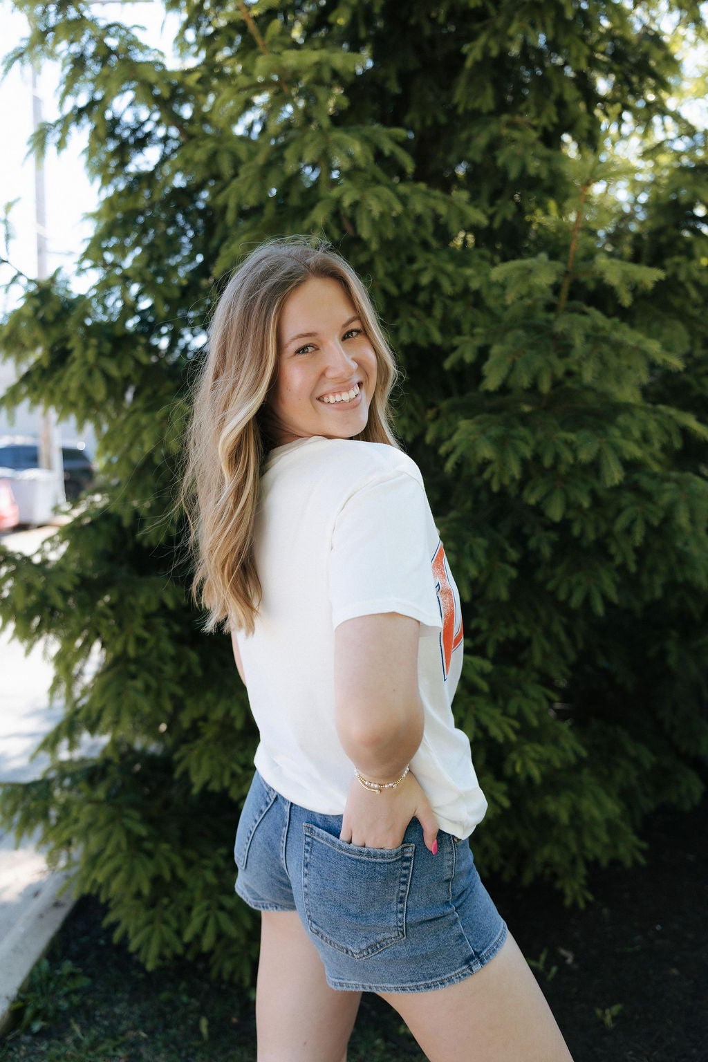 Fit: True to size, mid rise, button and zipper for closure, front and back pockets. Model is wearing a size small.