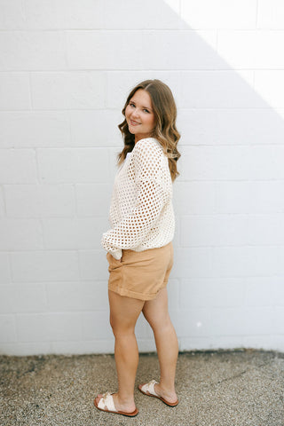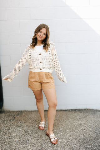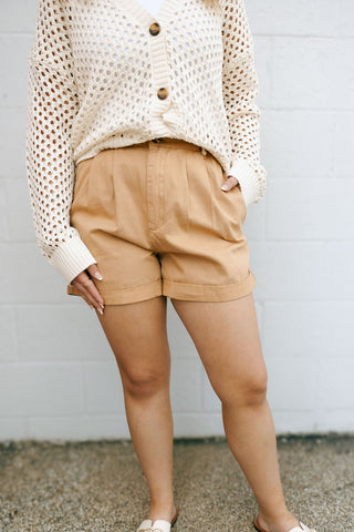 Elevate your style with our Harleigh Shorts in Khaki. These high-waisted, pleated shorts are perfect for any modern, dressy occasion. The simple design adds a touch of cuteness to your spring/summer wardrobe. Embrace a unique look with our Harleigh Shorts.