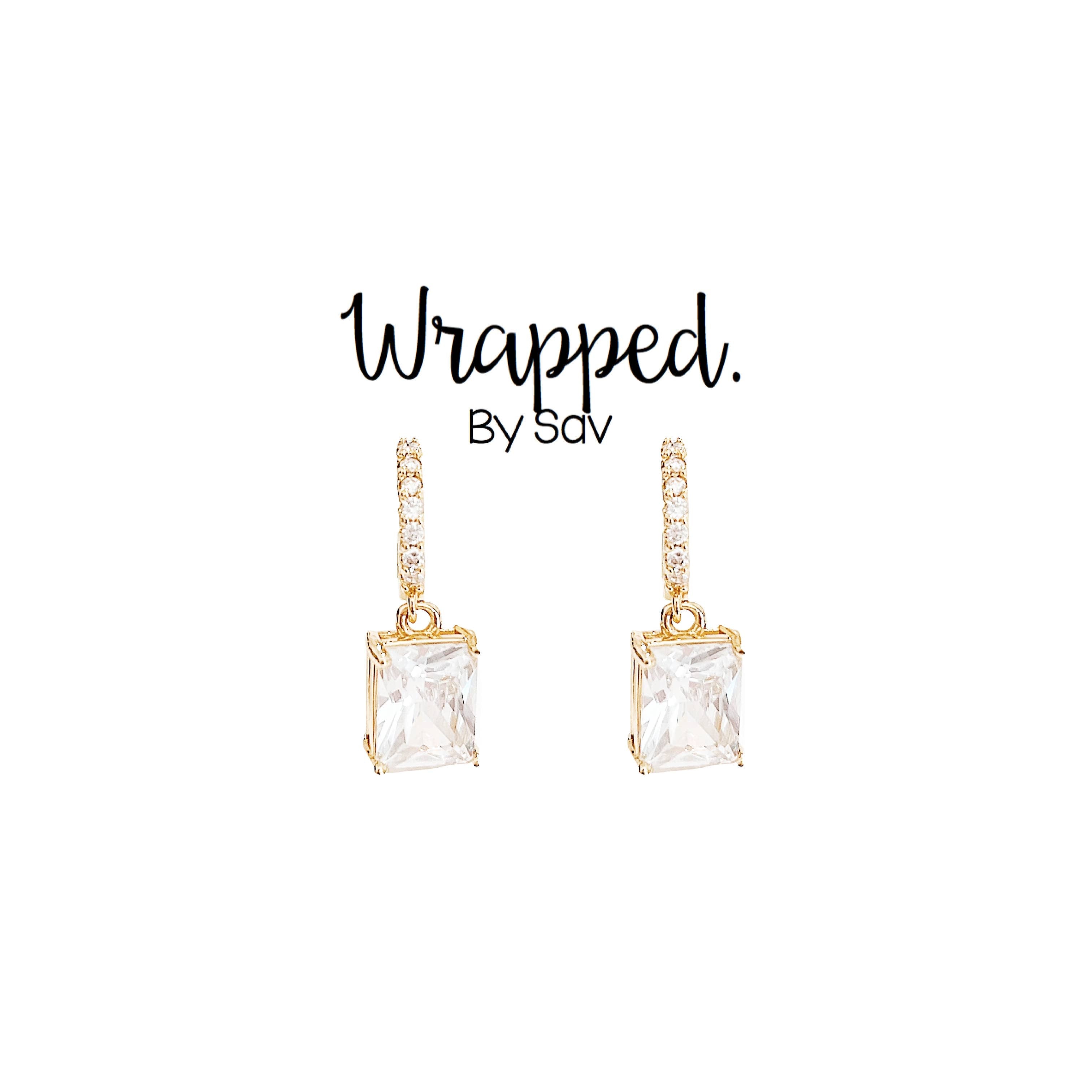Lead + Nickel Free Hypoallergenic Our classic charm huggie style featuring a dangling baguette charm.